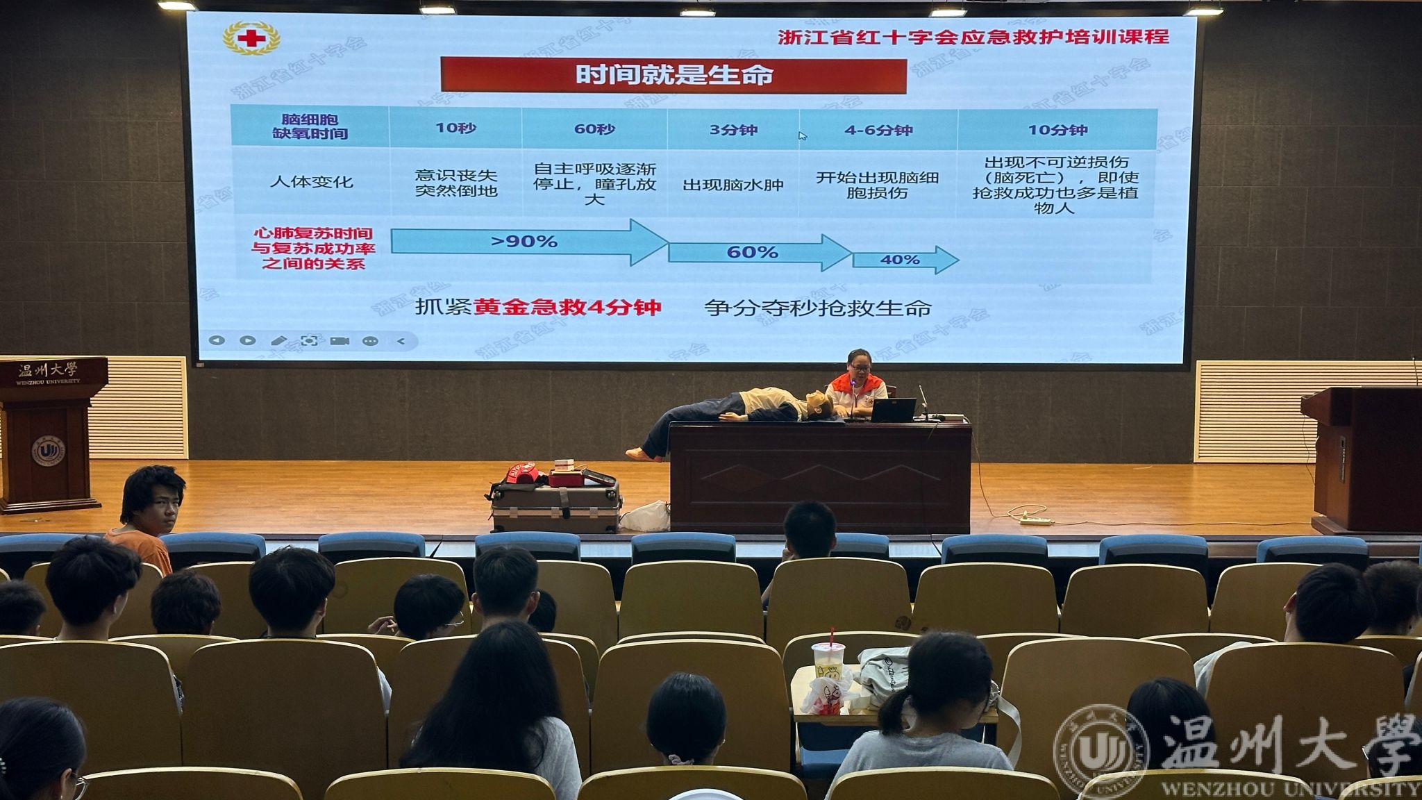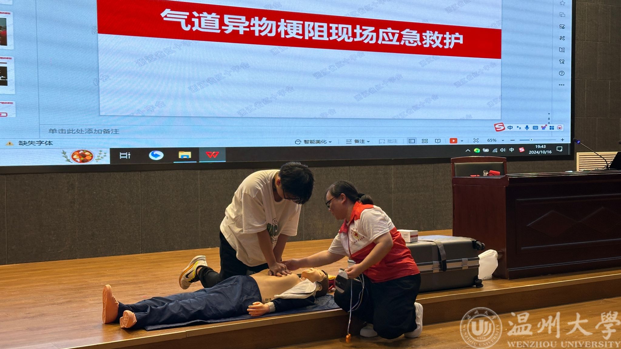 10月16日晚上,我院在岩松堂步青厅成功举办了一场以“大学生安全自救知识”为主题的讲座,本次讲座由温州大学医务室吴洁医生主讲,吸引了众多大学生前来聆听学习。讲座的内容贴合大学生实际,主要由两部分构成,一是现场CPR操作和AED的使用,二是气道异物梗阻的现场应急救援。