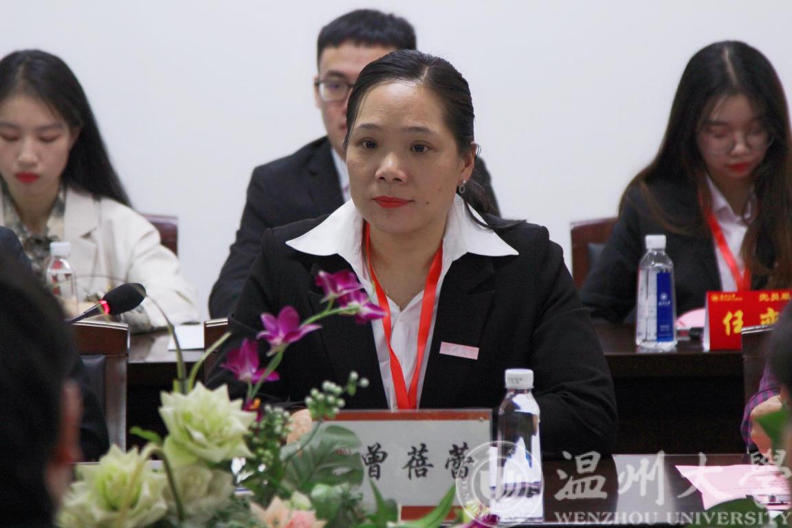 最后,院党委副书记曾蓓蕾对本次学生代表大会作总结讲话。曾书记首先向参会的代表表示感谢,并从三个方面提出了希望:第一,希望各位代表,继续秉持初心,认真学习国家有关文件精神,做新时代的新青年;第二,希望各位代表进一步增强服务意识和服务水平,加强沟通与交流,在班级建设和学院团学工作发挥更重要的作用;第三,希望学生干部根据学校、学院发展的实际和要求,积极参与校、院发展中来,为学校和学院的发展贡献出自己的青春力量。