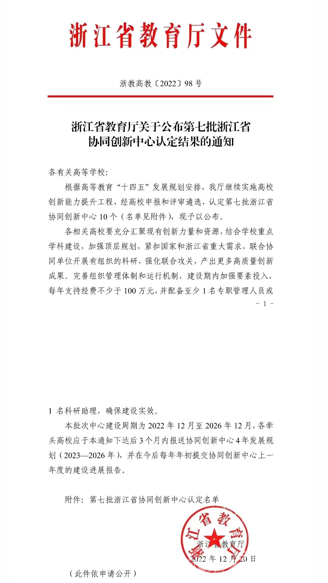 日前,浙江省教育厅公布第七批浙江省协同创新中心认定结果,我院舒亮研究员领衔申报的“电气数字化协同创新中心”获省级认定。本批全省共有10所高校的10个协同创新中心获得省级认定。这是我校第四个获得省级认定的协同创新中心。