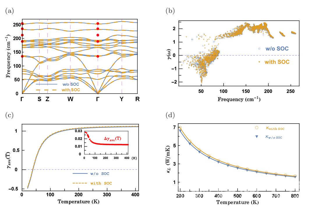 图1. 自旋轨道耦合对Cu2GeSe3声子输运的影响