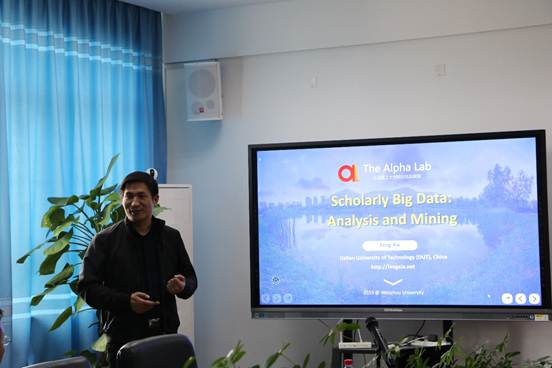2019年5月14日上午9点,温州大学计算机系邀请大连理工大学夏锋教授和孔祥杰副教授在我院分别做关于“学术大数据分析与挖掘”和“城市大数据分析与挖掘”的学术报告。