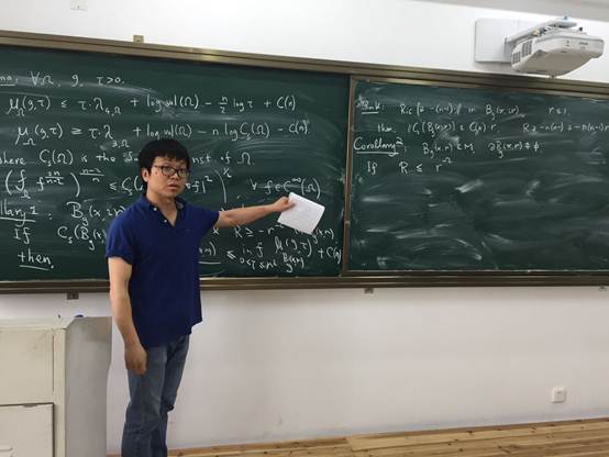 报告中张老师详细介绍了他和田刚院士合作的工作之一,Ricci流中局部约化体积定理的证明及相关问题,报告深入浅出,给出了问题的背景,详细探讨了证明中的若干技术细节问题。我院几何方向的教师和研究生参加了讲座。