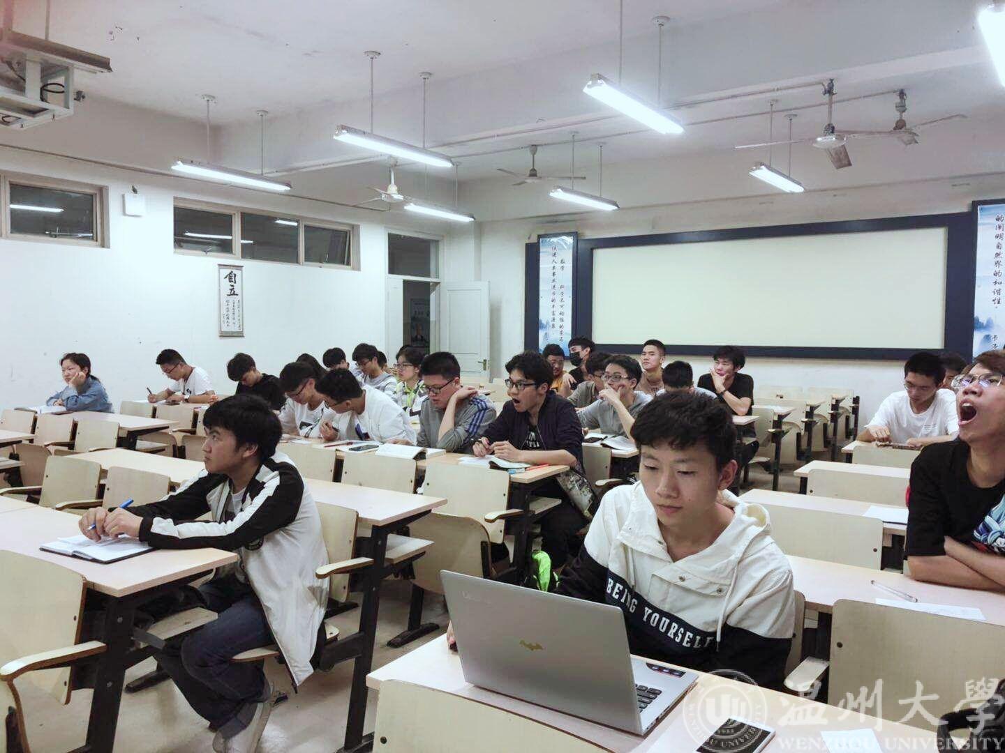 讲座伊始,方朝龙老师简单做了自我介绍,并向同学们指出自己的主要研究方向,呼吁有兴趣的同学积极参加他的科研课题。随后,方朝龙老师为大家讲解了微纳结构的本质,解读其制备原理和在光电子器件中的应用。在座同学纷纷被这深奥的科学原理所吸引,对科研课题有了浓厚的兴趣。方老师通过褶皱结构减反膜以及界面反射等等例子进行详细的说明,深入浅出地讲解了高深的知识。同学们在老师的讲解中掌握了微纳结构的要点,认真地做好笔记,并在课堂中向老师提出自己的疑问。由此可见,此次科创日的主题十分受欢迎。最后,同学们与老师合影留念,讲座正式落下帷幕。