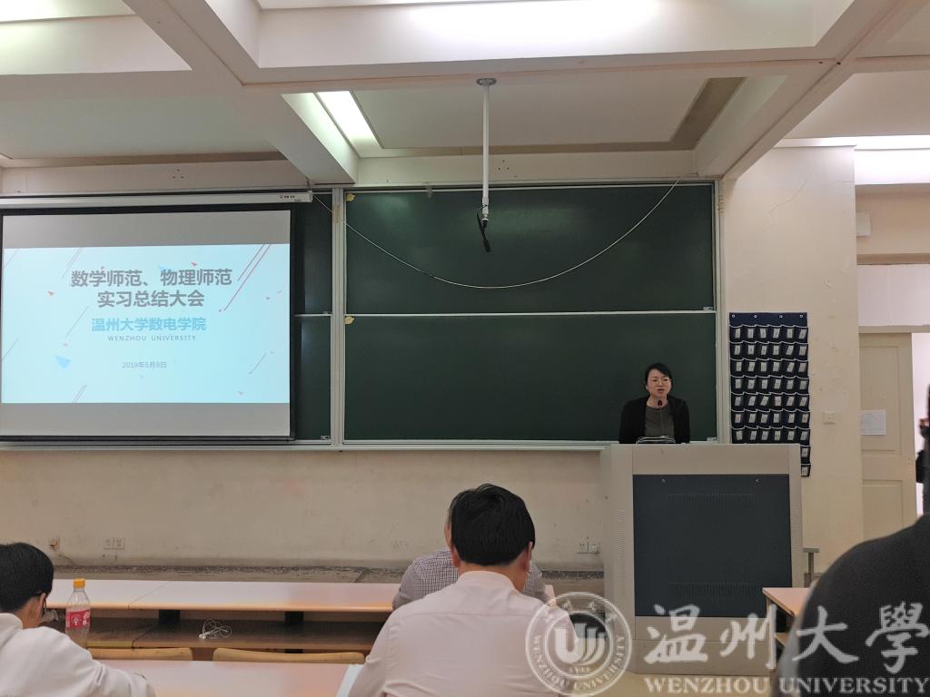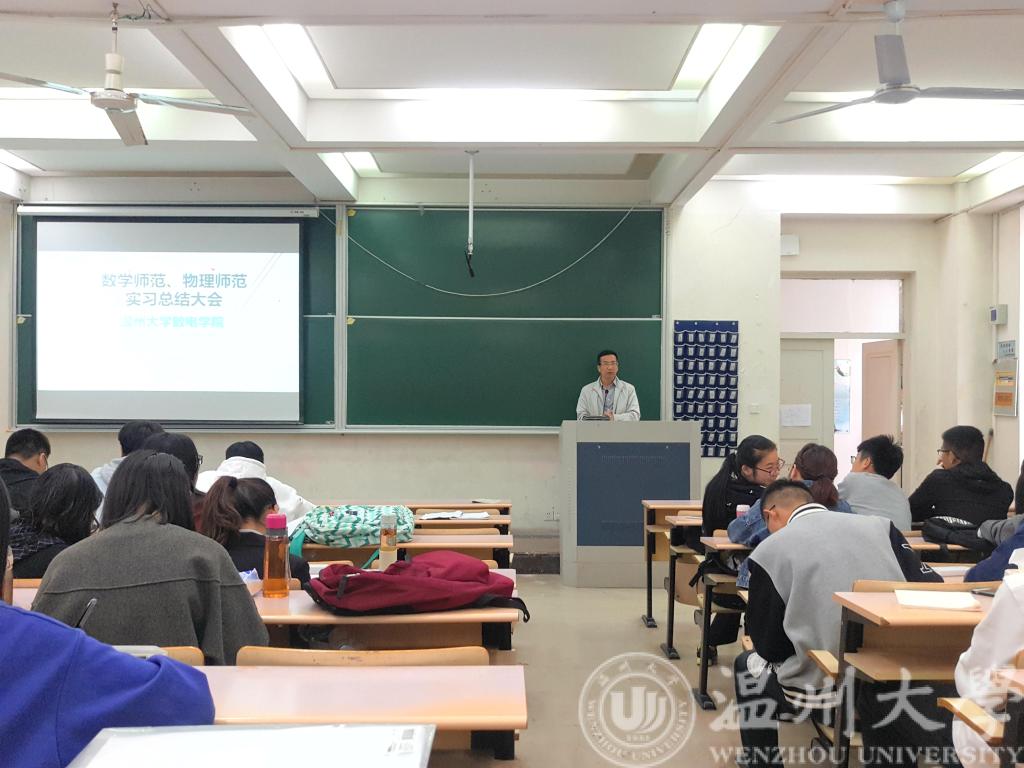 最后由杨胜老师总结发言:实习工作暂告一段落,但师范生的教师之路才刚刚启程。希望同学们能学以致用,将实习过程中的经历经验用于指导经后的教学工作,热爱教学,成为一名优秀的教师。