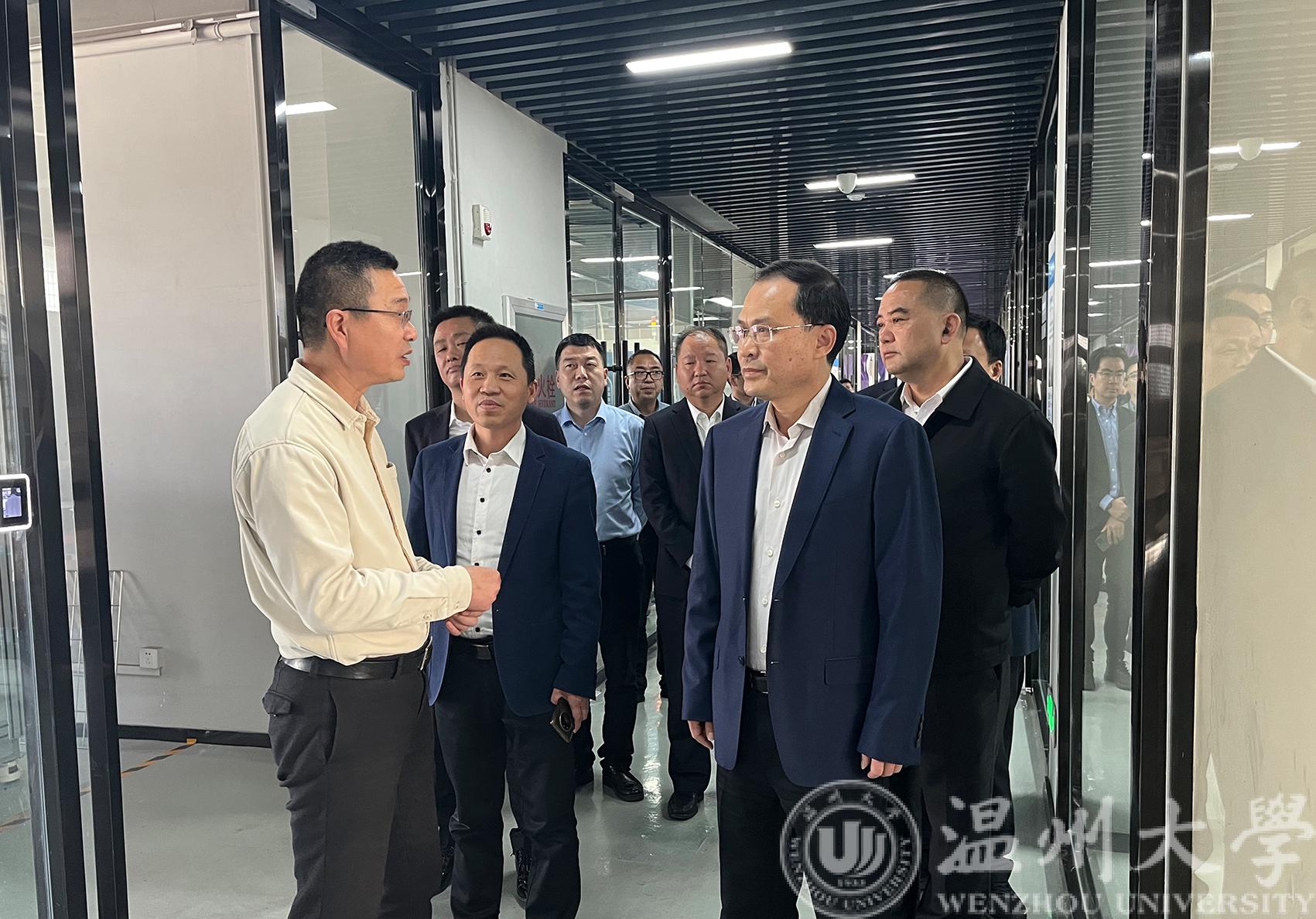 3月10日,温州市政协主席陈作荣一行来乐清调研科技创新和政协工作,莅临温州大学乐清工业研究院实地考察平台项目建设情况,温州大学副校长王舜、温州市科技局副局长朱勇敏、乐清市副市长叶序峰等陪同,研究院院长林振权、副院长吴自然等热情接待并汇报科技创新及服务企业工作。