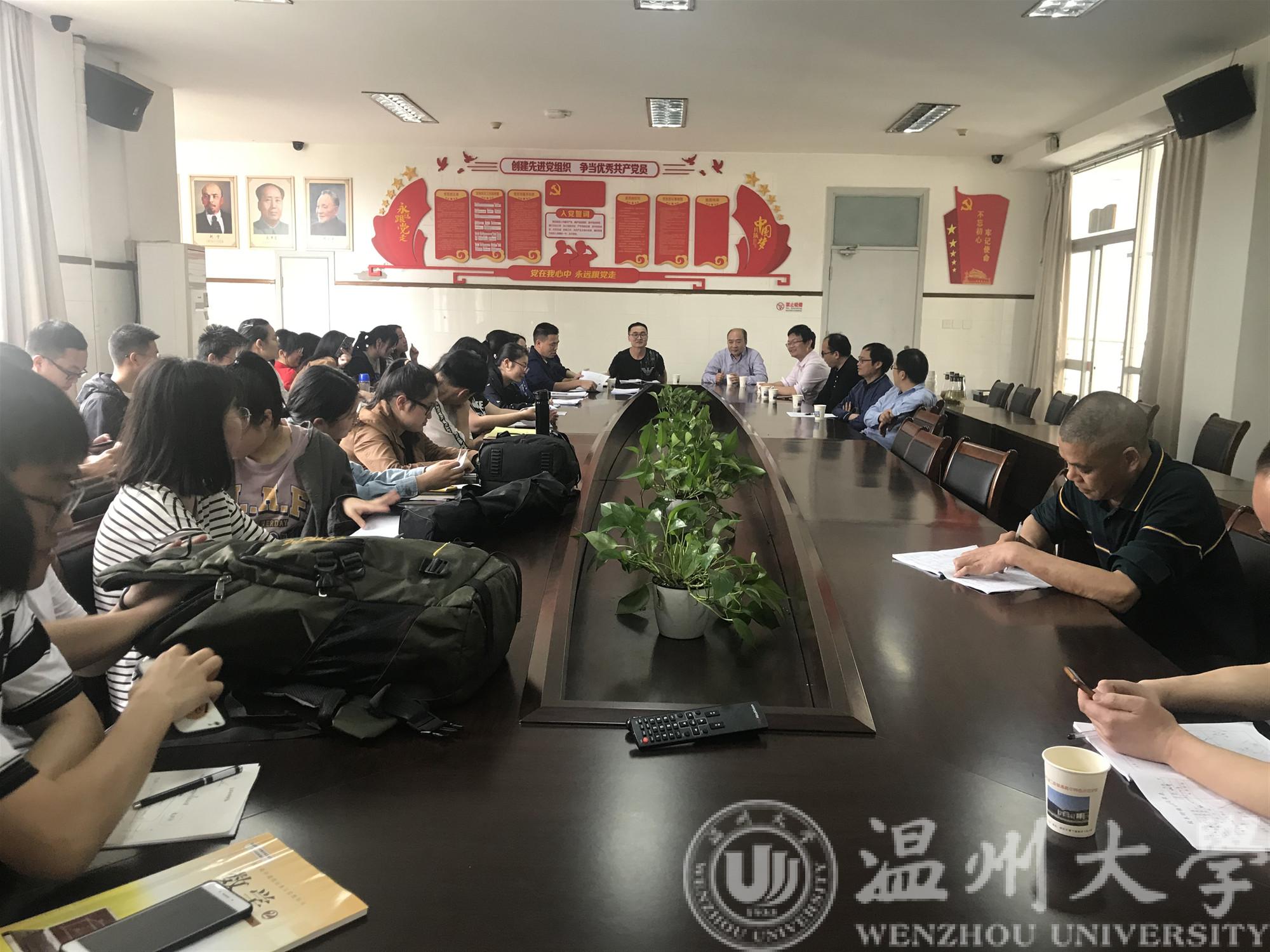 在瑞安塘下中学,两位优秀的实习生同学杨秀和黄建刚为大家呈现了两堂精彩的公开课,为这次实习做最后的汇报。公开课后,塘下中学的领导和老师们为实习生开了一个意义深远的总结交流会,塘下中学的教导主任张池老师主持本次会议。
