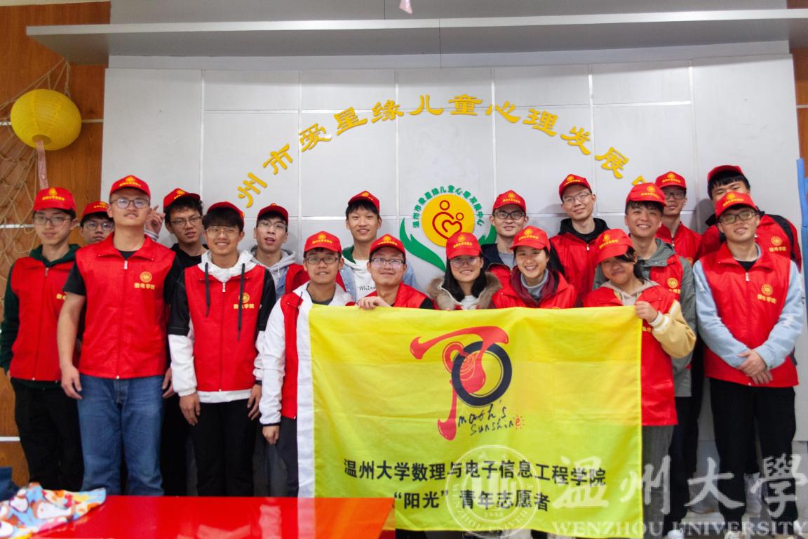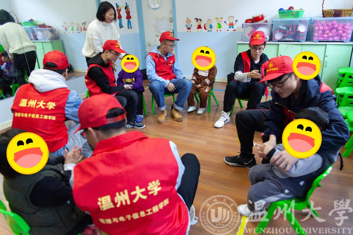2019年4月4日,温州大学数理与电子信息工程学院“阳光”青年志愿者中心组织了20名志愿者前往鹿城区爱星缘儿童心理发展中心,为自闭症儿童带去了欢乐与陪伴。
