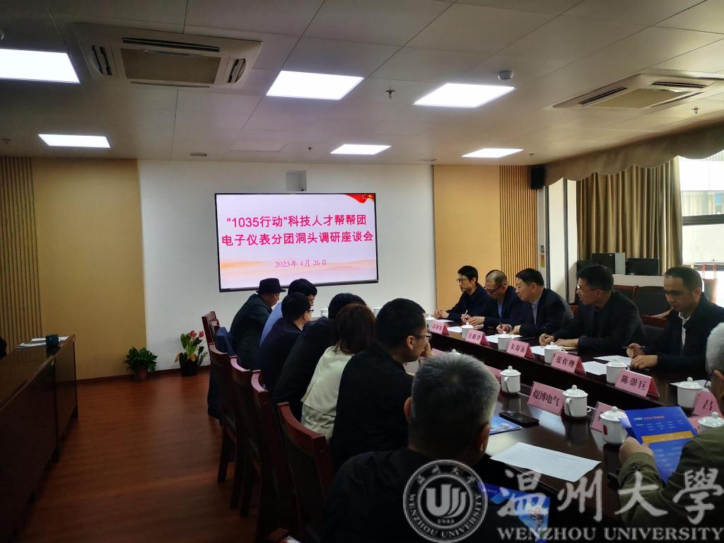 为深入贯彻落实党的二十大精神和中央促进共同富裕、省委“两个先行”决策部署,根据市《关于开展人才引领山区海岛县共同富裕“1035行动”的实施意见》目标要求,科技人才帮帮团-电子仪表分团团长汪鹏君教授携yl23455永利官网、温州职业技术学院相关人员一行10人于4月26日前往洞头区科技局及科技园调研电子电器产业技术堵点及需求。