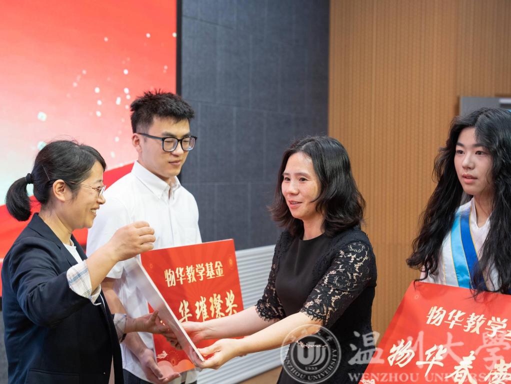 2023年5月6日下午14:10,温州大学第26届物华教学基金颁奖典礼在岩松堂步青厅举行。我院党委书记李方强、党委副书记曾蓓蕾及物华教学基金获奖师生受邀出席颁奖典礼。