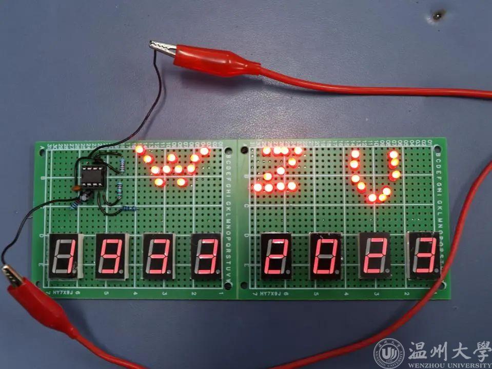 各小组大致构思完毕后,开始着手最重要的任务——焊接。在这个过程中,各小组内部进行了讨论和分工,现场每个同学都认真动手制作着内心中最美的焊接作品。有些同学用发光二极管焊成了“校庆主题”的字母缩写和90周年;有些同学则在“清廉主题”下焊出了莲花、荷叶等图案;还有一些同学则构建了精神上的具体表达,如劳动主题的抽象图形手等。