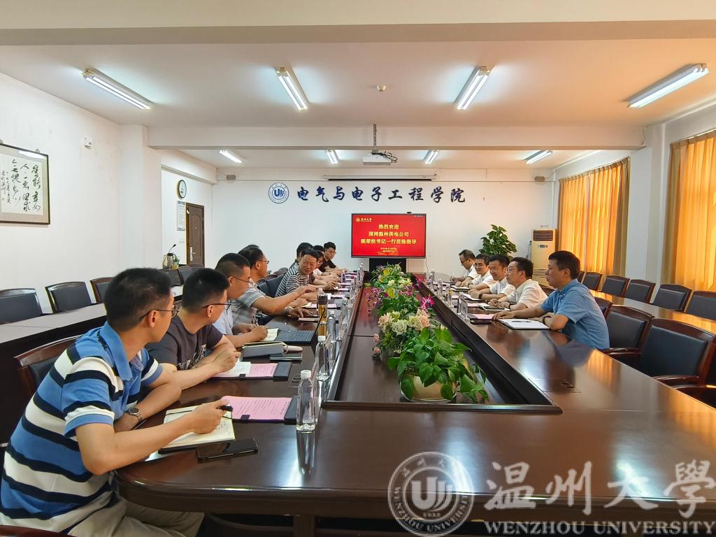 陈荣柱书记对我院发展建设所取得的成绩给予高度肯定,接着,他从公司概况、核心业务以及项目运行等角度介绍了国网温州供电公司的发展情况与未来的项目布局。与会教师代表们依次发言,就双方现有的合作成果与今后更深层次的合作进行了充分的交流与讨论。