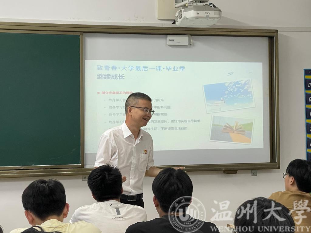 2023年6月19日下午3:30,在2023届毕业生即将告别温大校园之际,yl23455永利官网领导班子集体下班级,同毕业班班主任一道为毕业生上好最后一堂课。为做好本次毕业生教育,学院前期认真策划,精心组织,领导们围绕“立足当下,肩负青年时代使命”、“继续成长,树立终生学习意识”、“心怀感恩,培养优秀人格品质”、“展望未来,求学问是敢为人先”四个主题,分赴各个毕业班级,给毕业生们带去了尊尊嘱咐,勉励毕业生们,要听党话跟党走,勇于担当历史使命;要把劳意识形态关,坚持马克思主义信仰;要勤磨砺恒自律,提高能力本领;要懂感恩爱生活,成就精彩人生;要牢记温大校友身份,不忘校训院训,传承温大精神,在新的征程中继续发光发热,绽放最的青春。