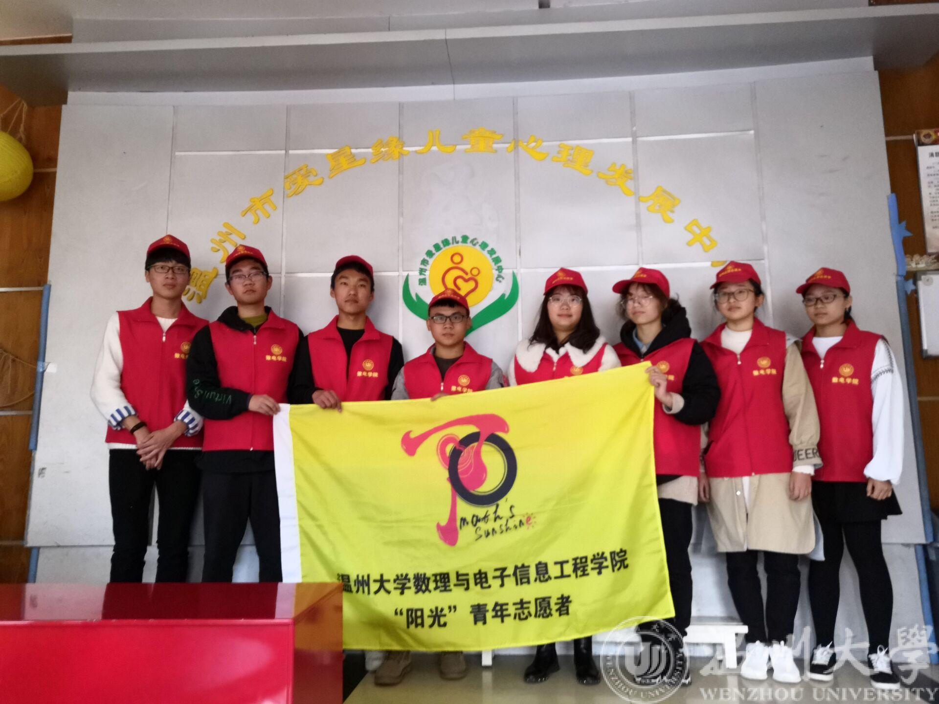 2019年3月6日,温州大学数理与电子信息工程学院的“阳光”青年志愿者中心组织了9名志愿者前往鹿城区爱星缘儿童心理发展中心,陪伴自闭症儿童们度过一个愉快的下午。