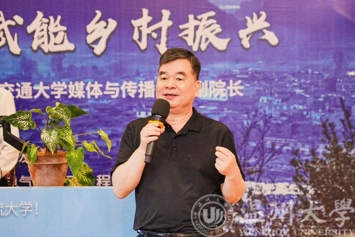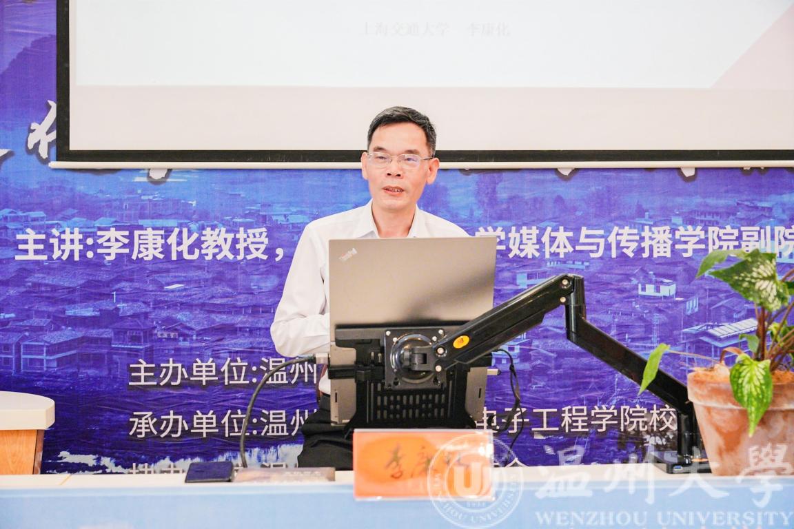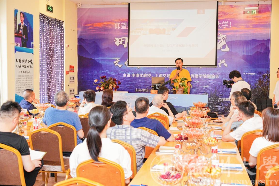 温州大学优秀校友、上海交大媒体与传播学院副院长李康化教授围绕《田园何以丰饶:文化产业赋能乡村振兴》作了主题分享。李教授就文化产业赋能乡村振兴的背景、重要性、举措和高校作为等四个方面展开分享,深入浅出的汇报引来现场校友的思考和阵阵掌声。