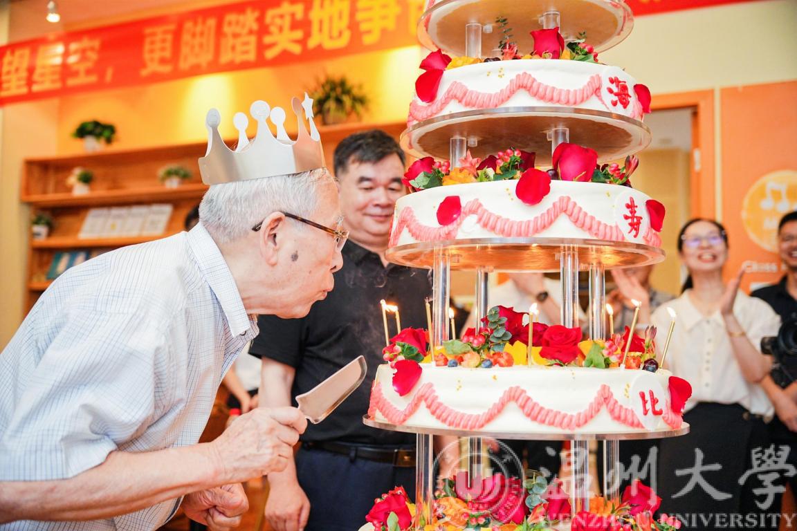 今年恰逢我校退休教授林精权先生九十周岁以及温州大学办学九十周年,徐校长与林先生共切九层纪念蛋糕,祝愿林先生能够健康长寿,也祝愿温州大学争创国家一流大学早日圆满成功!