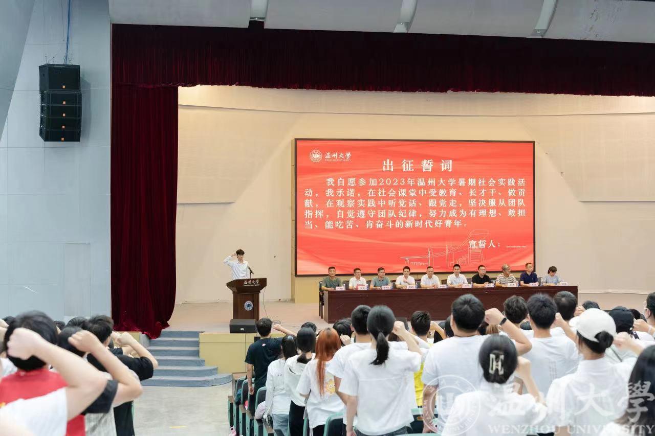 学院出征仪式结束以后,学院老师和实践队同学前往9号楼报告厅参加2023年温州大学暑期社会实践出征仪式暨安全教育大会。