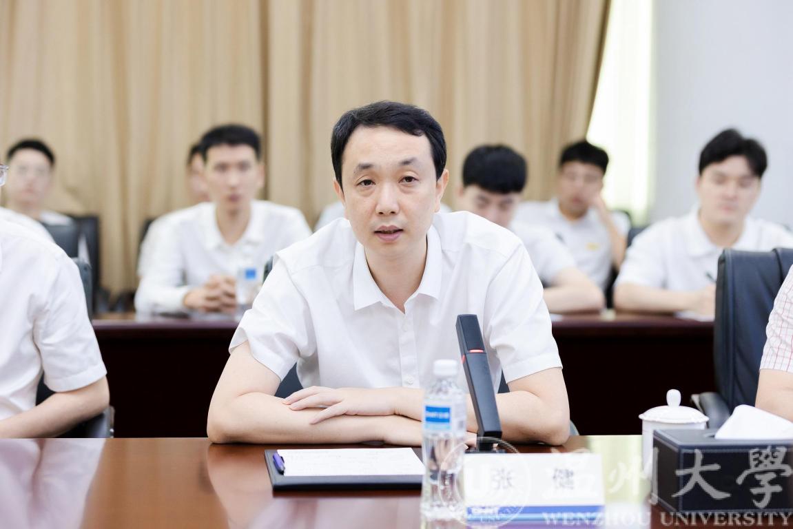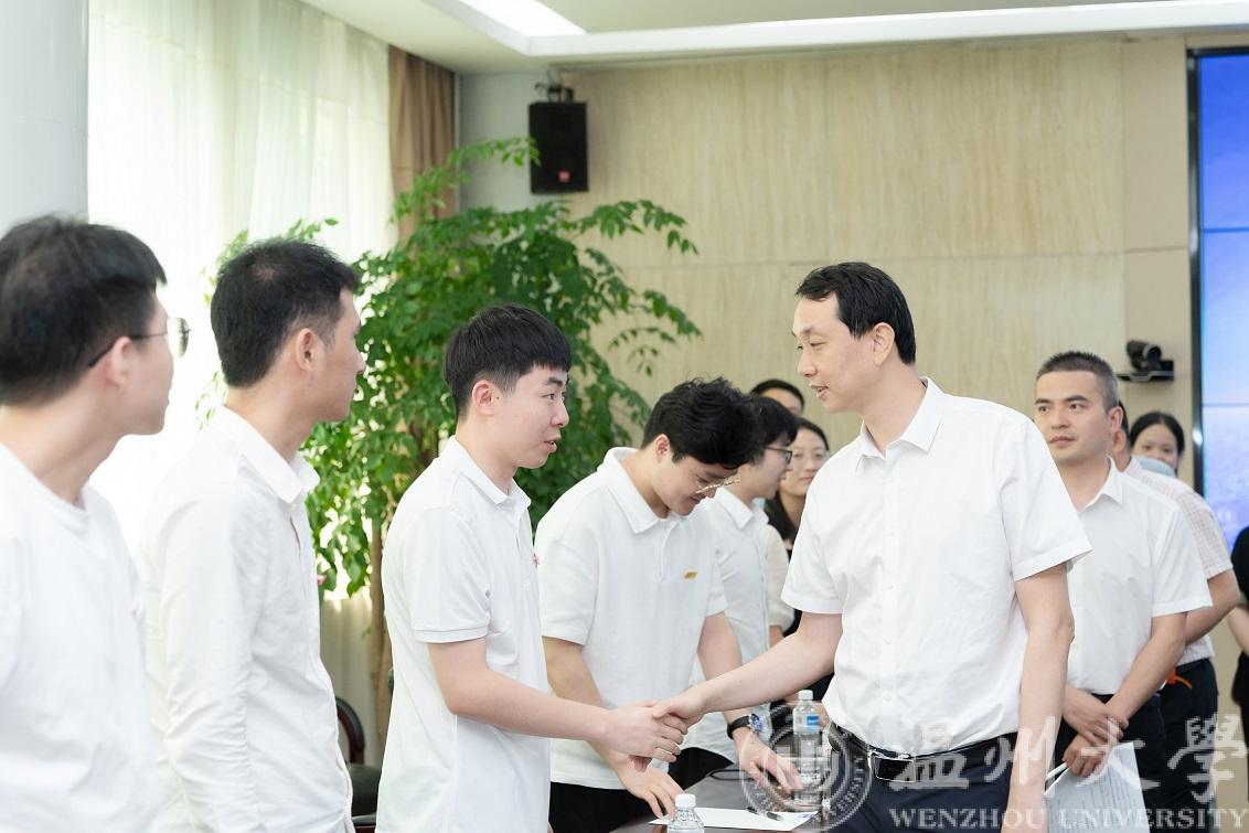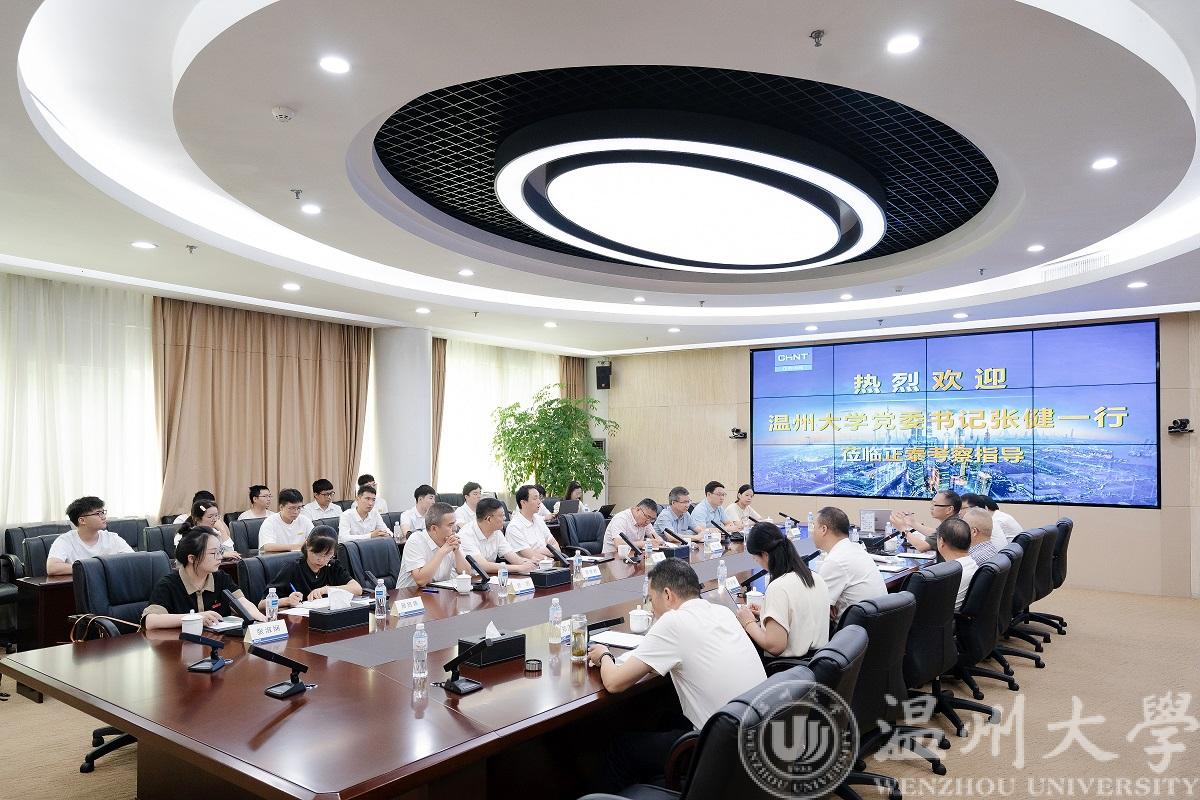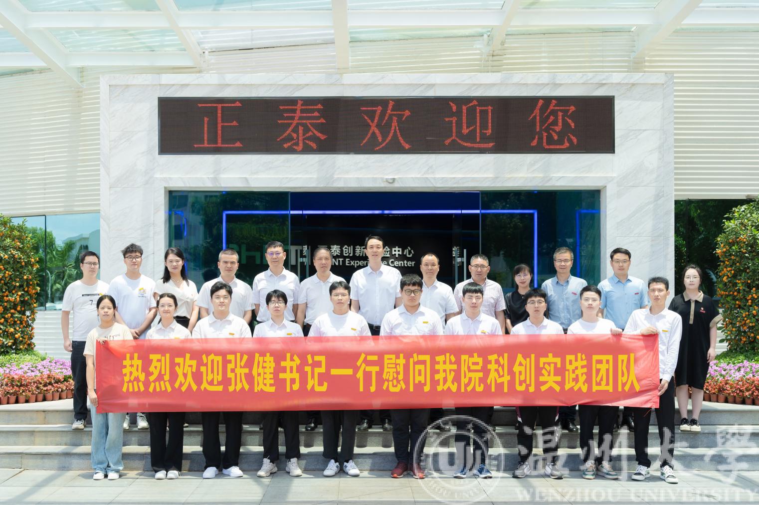 7月14日上午,温州大学党委书记张健来到正泰高科技工业园慰问我院“数字孪生技术”科创实践团队,乐清市副市长叶序锋,正泰集团党委书记、监事会主席吴炳池热情接待了张健书记一行。