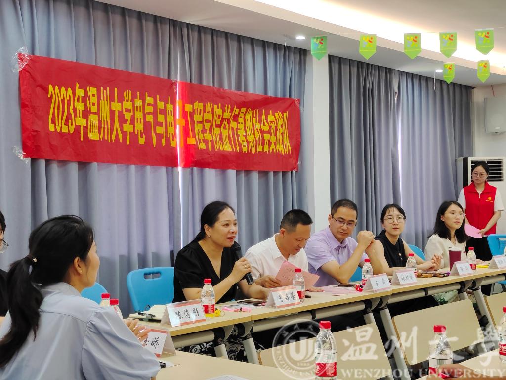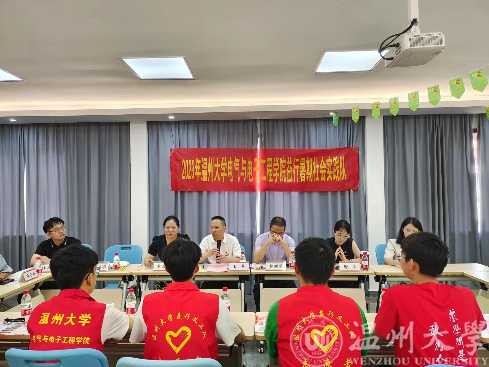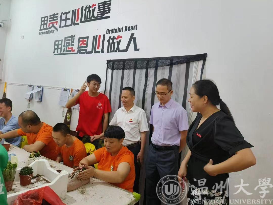 7月14日上午,温州大学党委委员、副校长王舜在龙湾区残联党组成员、副理事长林时察的陪同下,来到龙湾区青苗残疾人之家慰问我院益行暑期社会实践队。温州大学电子工程学院党委副书记曾蓓蕾、温州大学团委副书记徐瑶、温州大学团委韩新华、yl23455永利官网辅导员陈海彤等陪同慰问,龙湾区青苗残疾人之家项目负责人麻玉娇等热情接待王舜副校长一行。