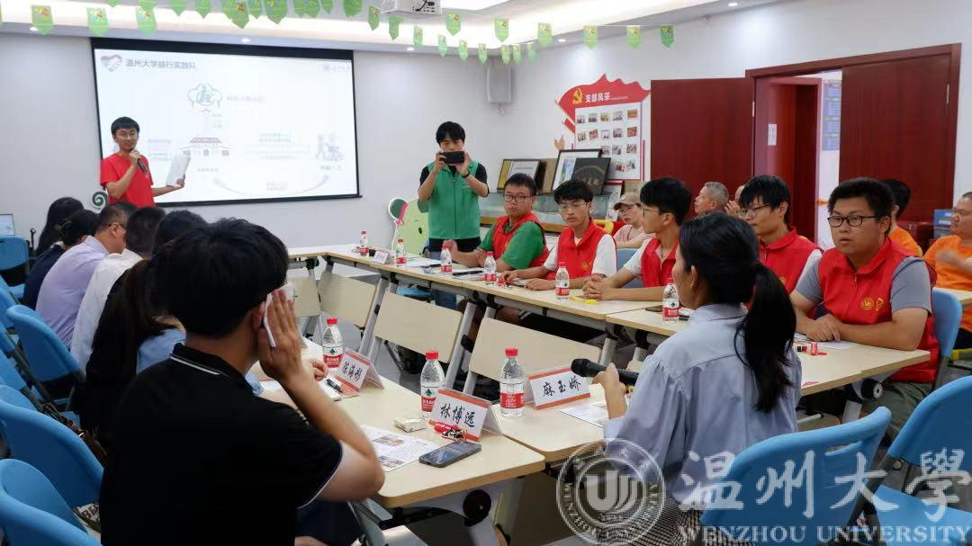 首先,由温州大学益行实践队队长周仲昉等同学围绕着“八八战略,共富助残”主题开展宣讲。他从“八八战略”中注重对弱势群体,尤其是残疾人群体的关爱和扶持,帮助他们实现更好的生活质量、创造更多的机会的视角进行阐述,并分享了温州大学“单脚鞋银行”志愿服务项目的创办理念和项目成效。