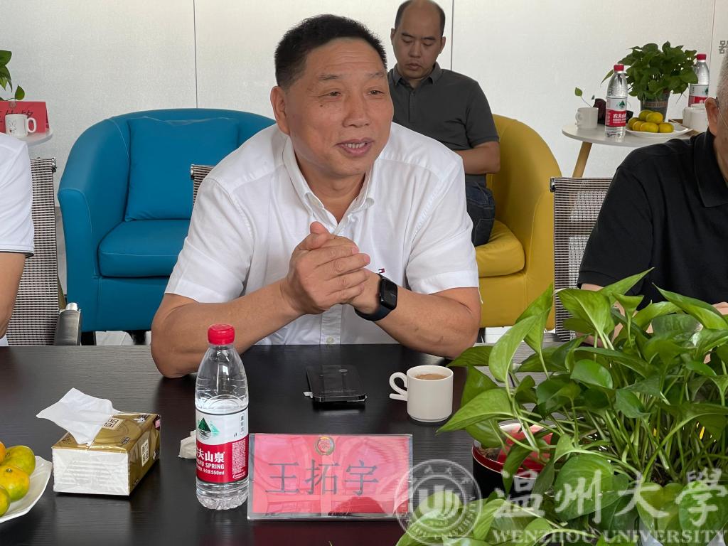 为进一步加强学校与地方校友会的沟通交流,探索学校与地方校友会的合作发展新模式,9月26日上午,yl23455永利官网党委书记李方强、党委副书记曾蓓蕾、温州大学乐清工业研究院副院长舒亮一行赴乐清走访温大乐清校友会及校友企业,洽谈乐清校友会和学院结对合作事宜。乐清校友会会长王拓宇、副会长兼秘书长张俊生、副会长王孝新等六位校友代表热情接待并出席恳谈会。