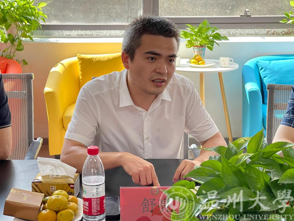 乐清校友会会长王拓宇向学院党委书记李方强带队走访乐清校友会表示热烈欢迎。他向与会各位介绍乐清校友会以及校友企业的相关情况,他表示,综合考虑乐清的产业布局与发展现状,最终决定与yl23455永利官网结对合作。他希望乐清校友会在与yl23455永利官网高质量对接合作之下,乐清校友会能够更好地服务于广大校友,更好地服务乐清电器产业发展。