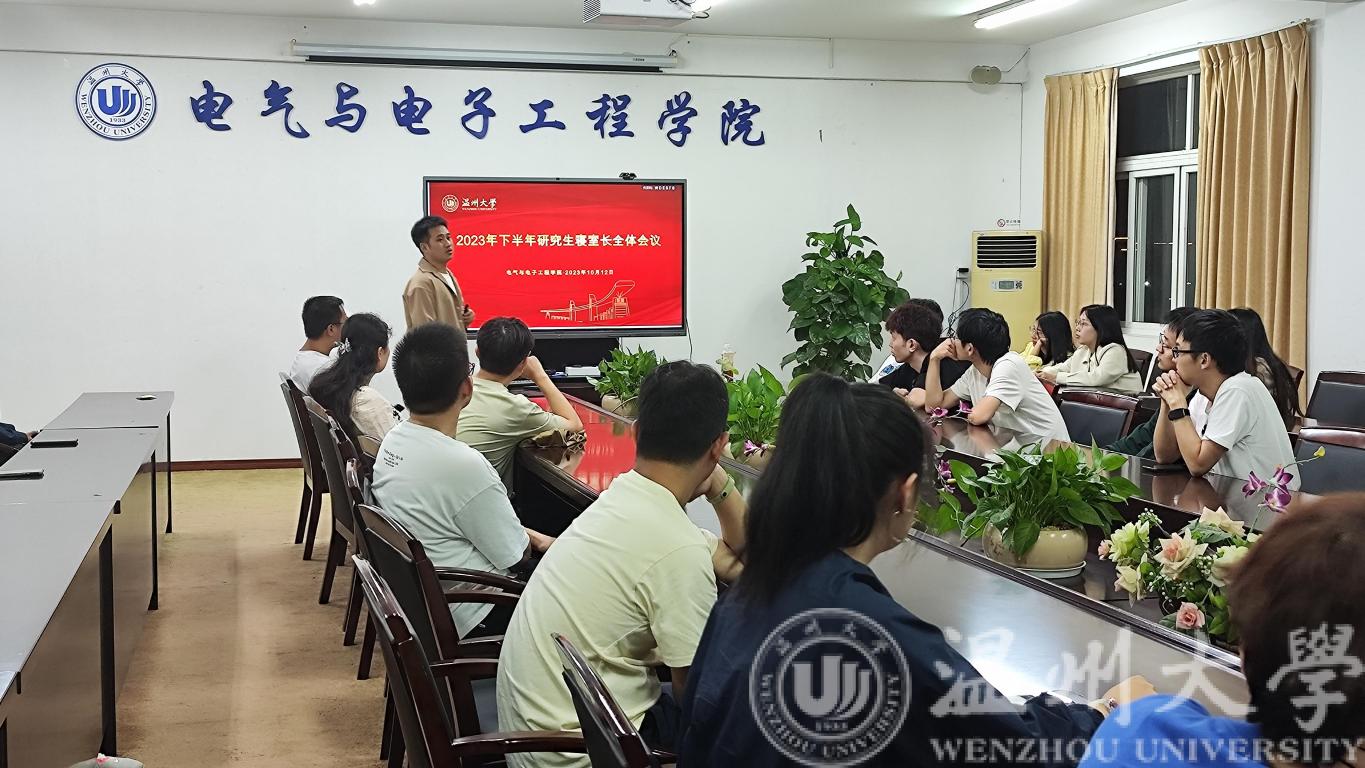 2023年10月12日晚19:00,yl23455永利官网全体研究生寝室长会议在1A502召开。本次会议由研究生辅导员余明新主持,强调了研究生寝室在开学以来所出现的违规电器和私拉电线的违规情况。值得表扬的是违规电器在我院研究生寝室基本不存在,但是私拉电线的情况在开学以来屡次出现。私拉电线存在一定的风险,危及到我们学生在寝室内的人身安全,身为电气电子专业的学生更应该清楚用电的安全性。余老师对开学以来出现的私拉电线的具体情况向全体寝室长一一介绍,希望各寝室长回去以后逐一排查寝室所存在的违规电器、私拉电线以及其他存在的安全隐患,尽早消除寝室存在的安全隐患,保障同学们在学校的安全学习生活。