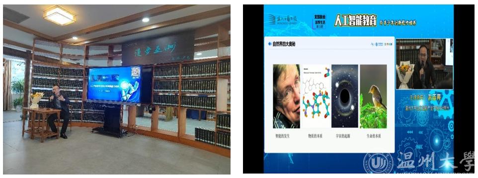 11月12号,yl23455永利官网朱志亮老师受邀在温州市图书馆开了一场《走近人工智能,探讨数智时代青少年创新能力培养》主题讲座。本次活动是温州市图书馆“文旅融合·智享生活”系列讲座之一,线上线下共计约7000来人参与了此次讲座。