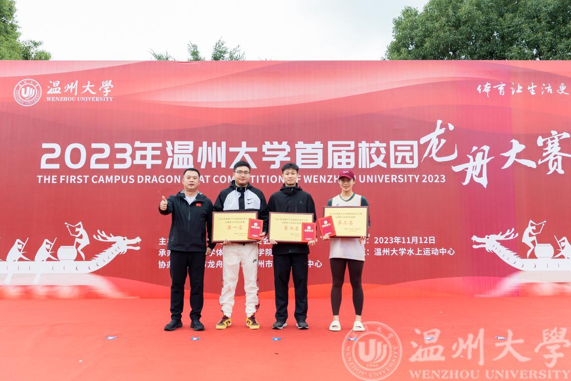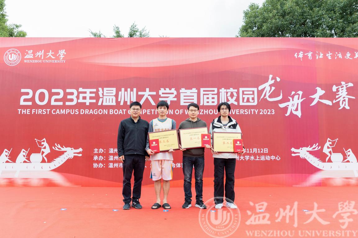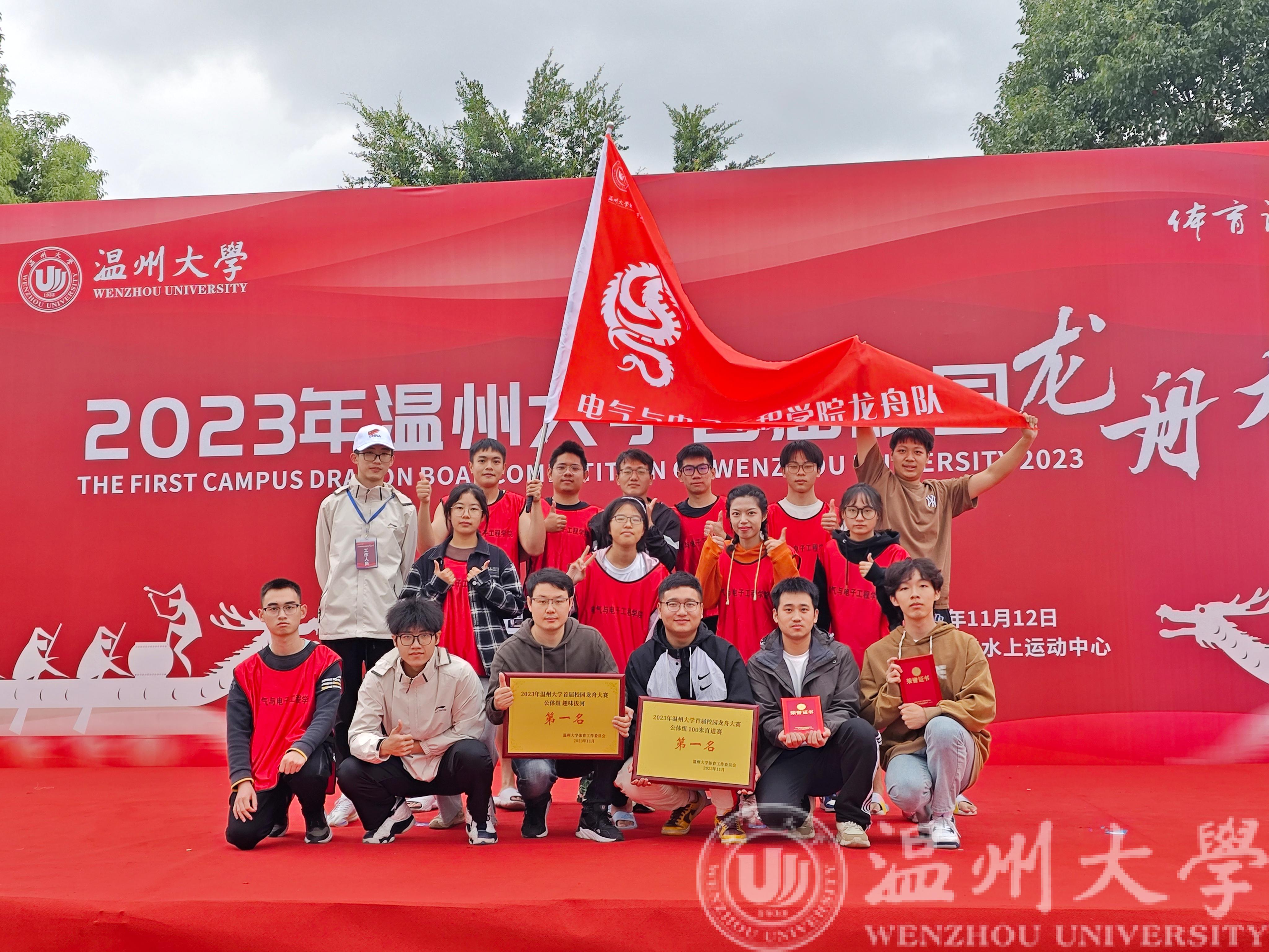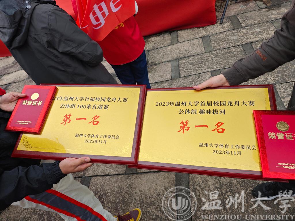11月12日上午9时,2023年温州大学首届校园龙舟大赛在南校区龙舟码头举行,我院师生代表队齐心协力、奋勇争先,经过激烈角逐,我院代表队在公体组100米直道赛和趣味拔河竞技赛中均获得第一名,夺得双料冠军。