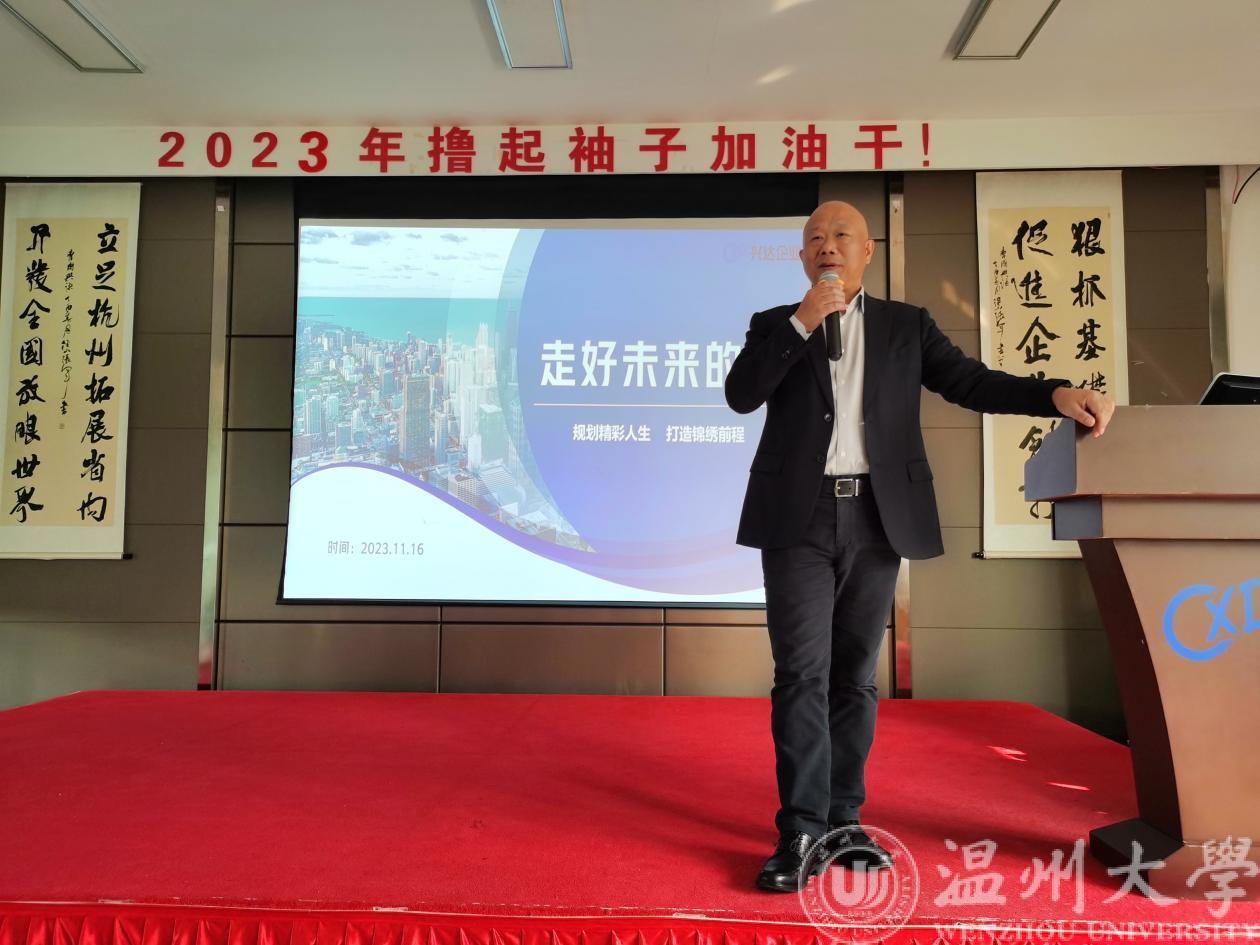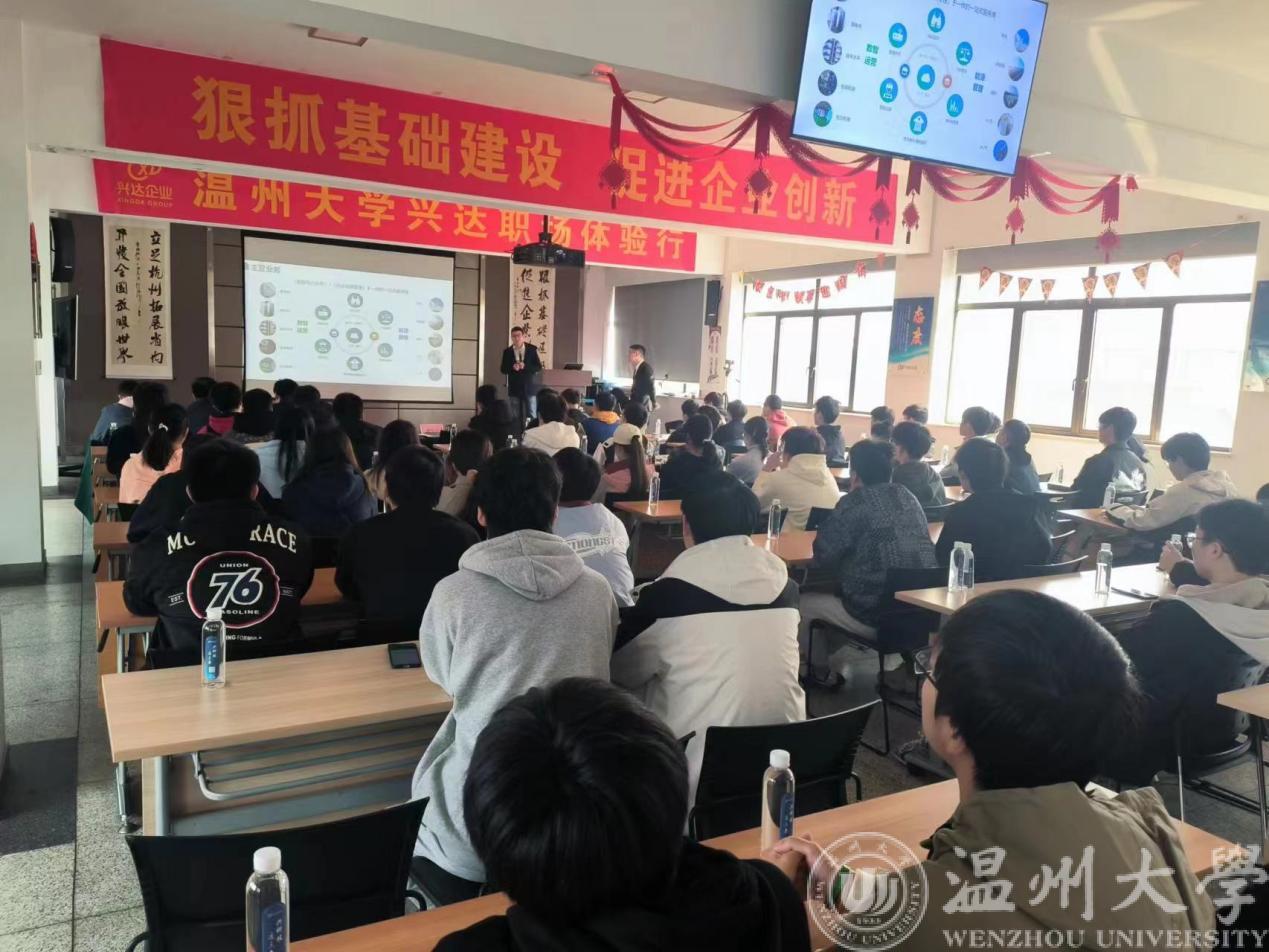 11月16日下午,团队一行抵达杭州兴达,同学们满怀期待走进园区,企业人员热烈欢迎学生们的到来,在对公司主营业务进行简单介绍后,董事长曹国兴进行了40分钟的职业生涯讲座,他结合大树理论,嘱咐年轻人要像树苗一样经历时间的沉淀,沉下心在一个岗位扎下根来,才能在未来有所作为;要像大树一样向上生长,面向阳光,做一个乐观积极向上的人。曹国兴董事长将公司的发展经历和自己的人生经验分享给了学生,最后给予了一些专业建议,鼓励学生提前做好自己的职业规划。之后,同学们参观了企业的成套装备车间和实际工程项目现场。