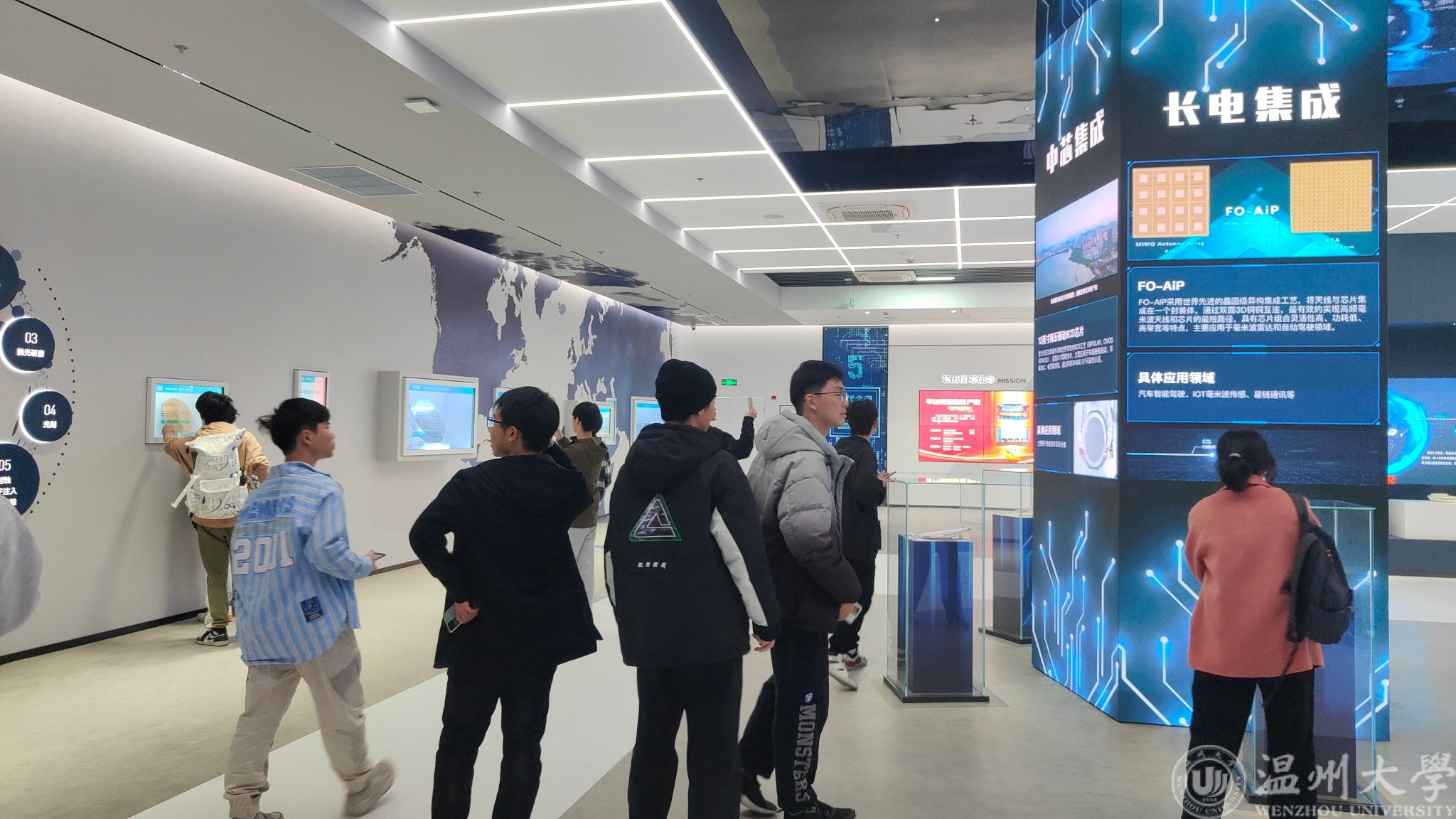 12月5日下午,团队一行抵达绍兴集成电路产业园,同学们满怀期待走进园区。园区管委会和展示中心的人员热烈欢迎学生们的到来,并对产业园的整体发展和企业情况进行了简单的介绍,让同学们对长三角和浙江集成电路产业的规划和分布有了一定的了解。