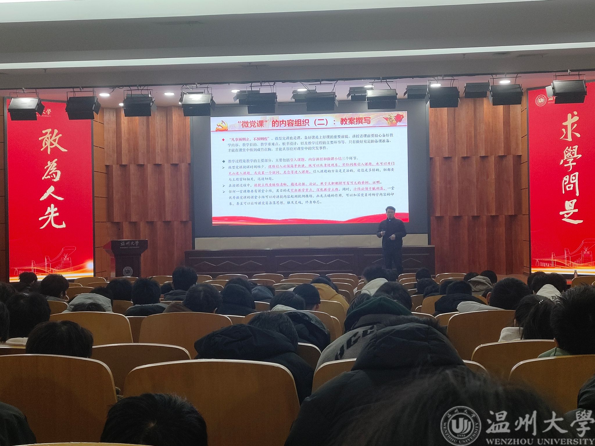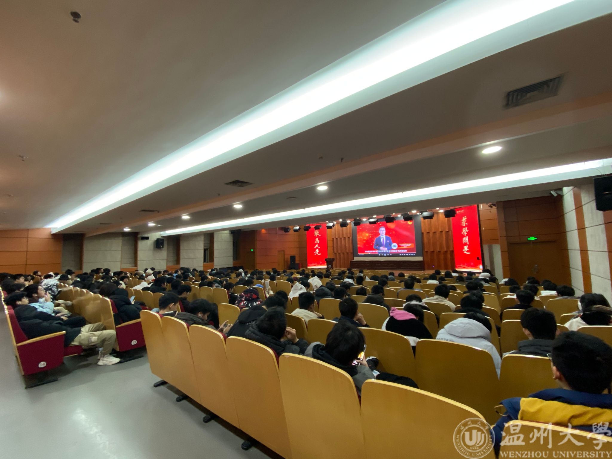 潘龙飞老师在正式开讲之前,向与会同学详细介绍了校团委下发的《关于举办温州大学2024年度思政微课大赛的通知》,号召同学们积极参赛。