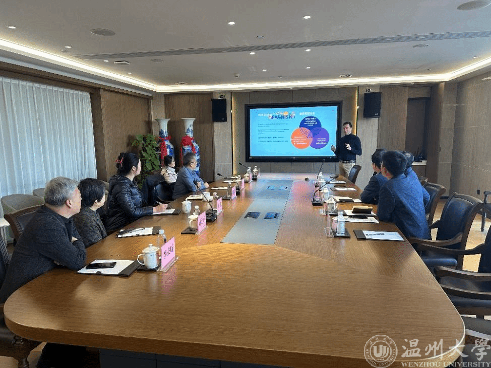 会议伊始,中国西班牙商会会长路易斯介绍了西班牙商会的基本概况,并着重介绍了萨拉戈萨大学的相关信息,以及过往与中国高校合作办学项目的招生方式、教学模式、课程设置、师资建设等详细情况。