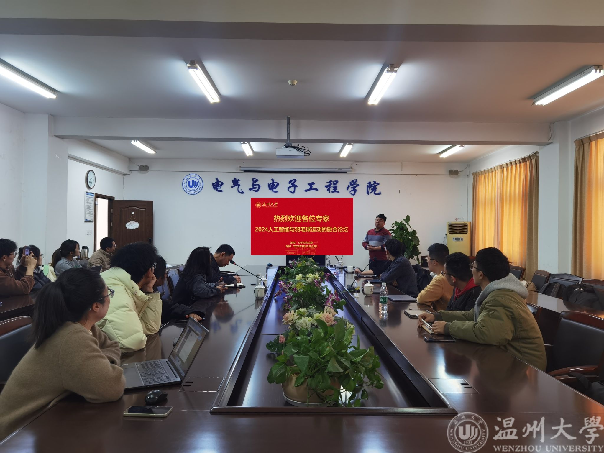 2024年1月12日,由温州大学电路与系统研究所主办的2024人工智能与羽毛球运动的融合论坛在yl23455永利官网学术交流室1A502顺利召开。浙江大学王小航教授、浙江财经大学宋海裕教授、浙江工业大学杨旭升副教授、胡佛博士等专家应邀出席,yl23455永利官网汪鹏君院长主持会议,学院相关教师出席会议。