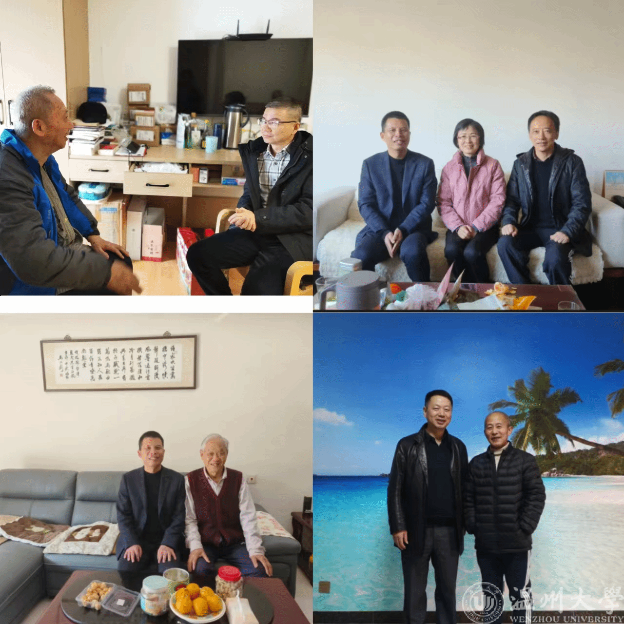 节及元正,万象更新。在岁序更迭的美好时刻,在新春佳节即将来临之际,为给离退休教师们送上节日问候和学校温暖,近日,温州大学yl23455永利官网组织安排学院领导携带慰问品分头走访慰问学院17位离退休教师,向他们通报一年来学校、学院发展成绩,送去学校、学院的诚挚问候和新年祝福。对个别不在温州的离退休老师,学院逐一电话慰问并寄去了慰问品。