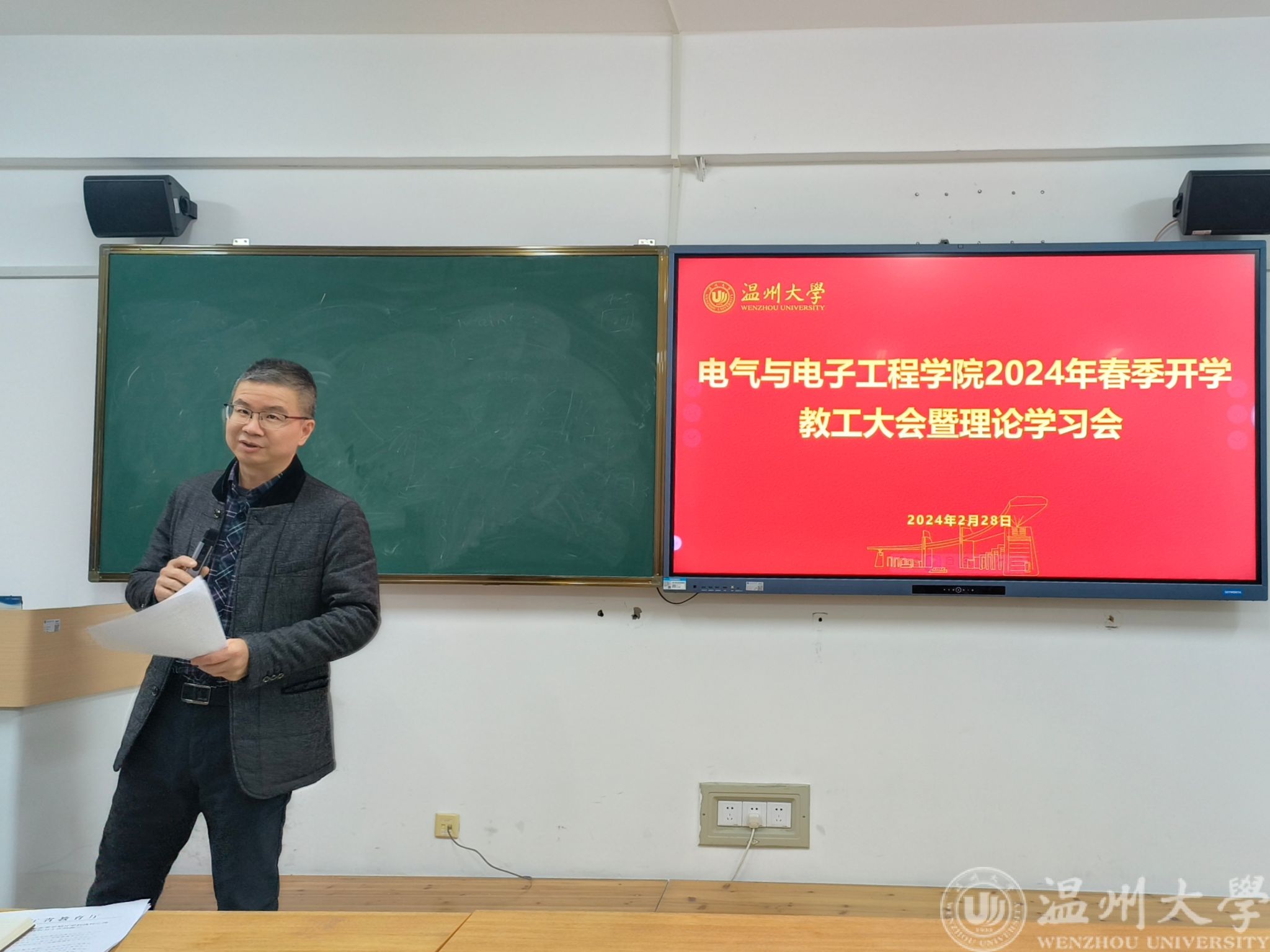 2月28日下午,yl23455永利官网召开2024年春季开学教工大会暨理论学习会。会议由学院党委书记李方强主持,全院教职工参加会议。