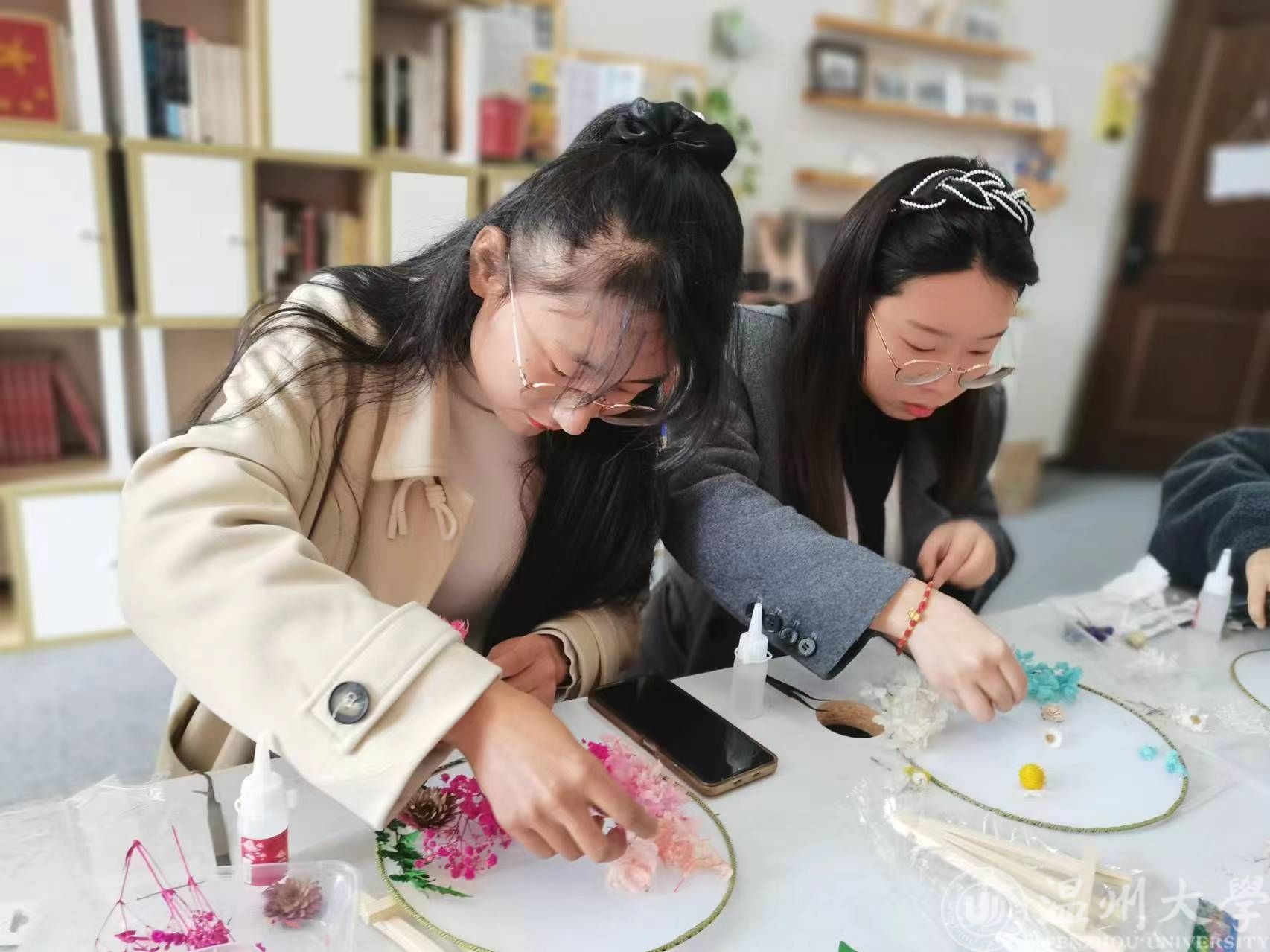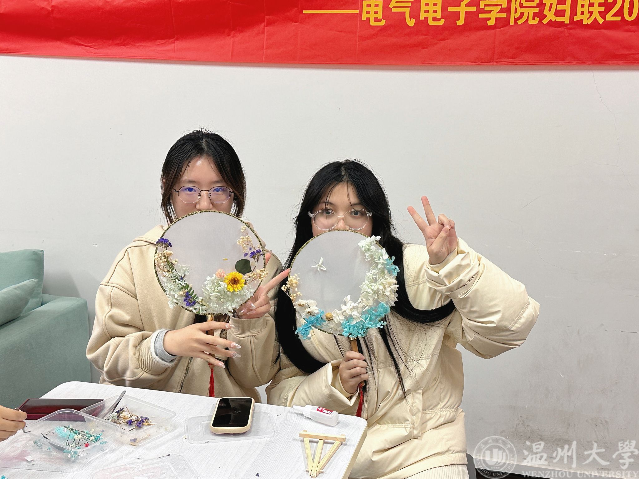 师生们欢聚一堂,共同体验传统文化的魅力。活动现场,大家纷纷投入到创作中。她们挑选自己喜欢的干花,巧妙搭配,粘贴在团扇上,展现出自己独特的艺术审美。经过一番努力,一把把精美的干花团扇应运而生,每一把都是独一无二的,充满了创意和美感。