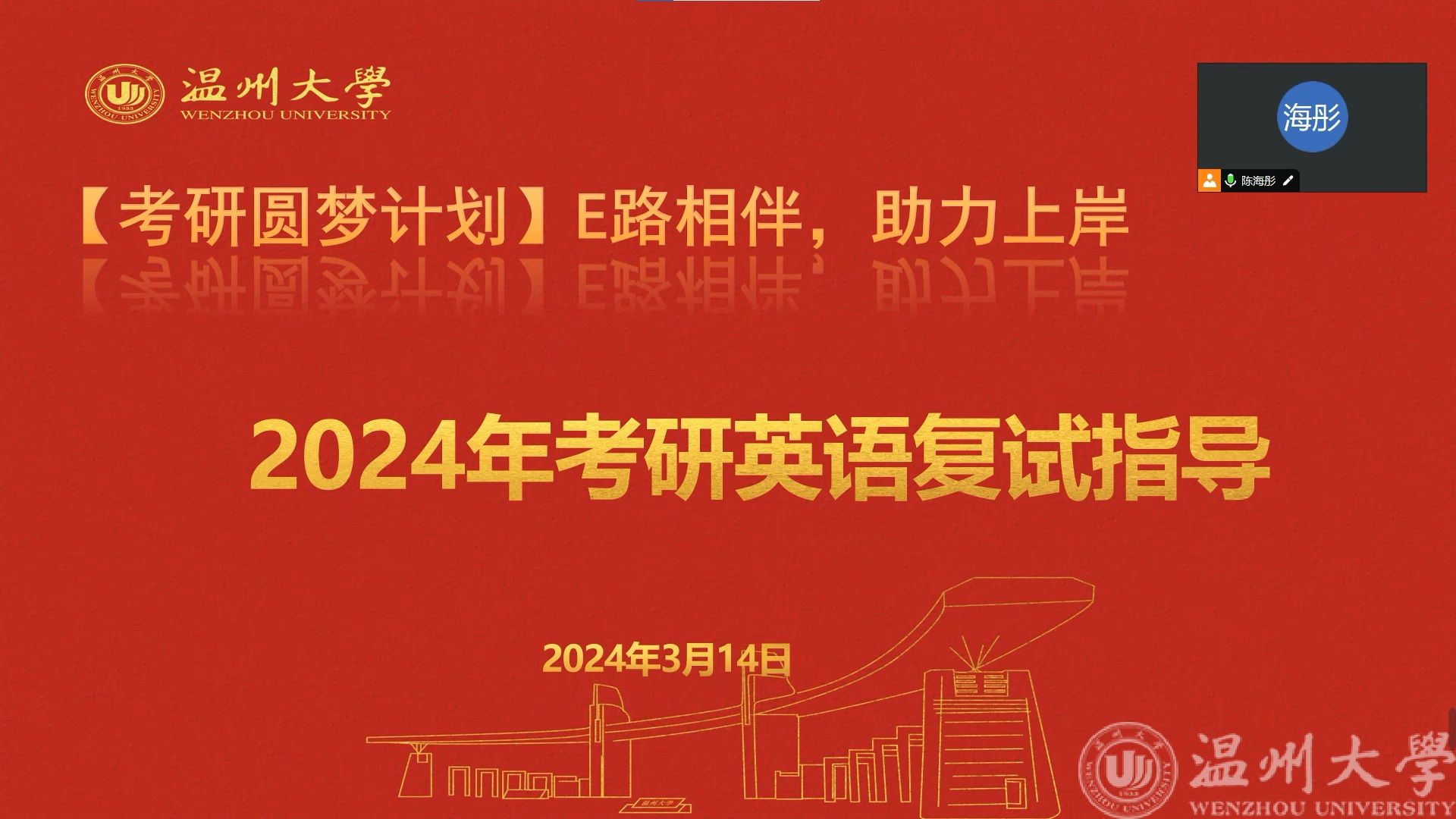 我院一直高度重视学生的考研准备工作,通过举办各类考研辅导、复试经验分享活动,为学生提供全方位的支持。近年来,外国语学院教工第二党支部的“E路有你”公益辅导团队一直致力于指导我院学子考研英语复试,帮助他们顺利圆梦。去年,我院有十余名学生参与该团队王素娟老师两次英语复试的线上指导,助力十余位同学顺利上岸;3月13日下午,“E路有你”公益辅导团队叶小芳、苏玉洁、冯小芳和陈博栋四位老师,莅临我院为同学们提供线下考研英语复试指导。他们的有力指导让同学们对接下来的英语复试环节充满信心。