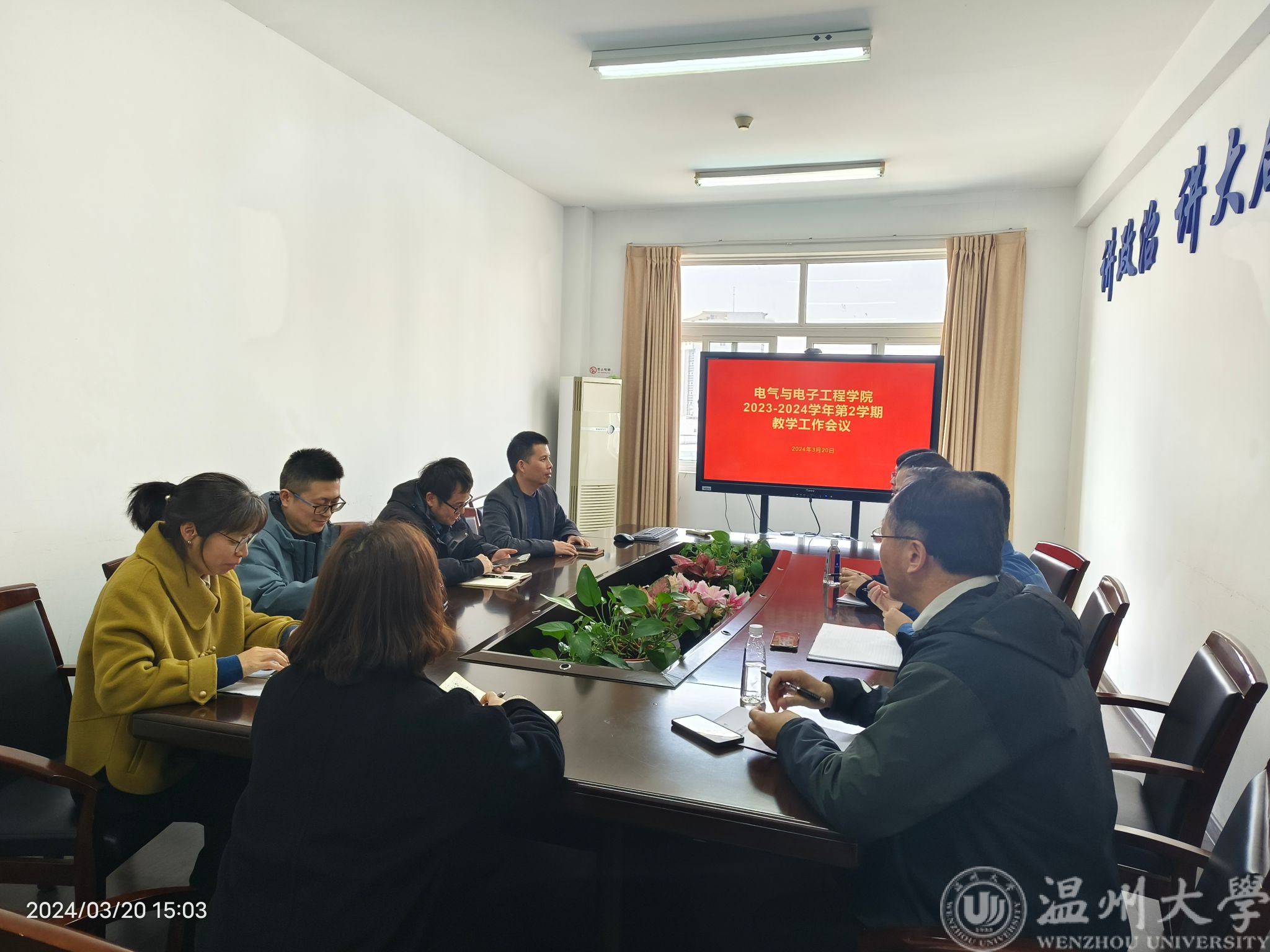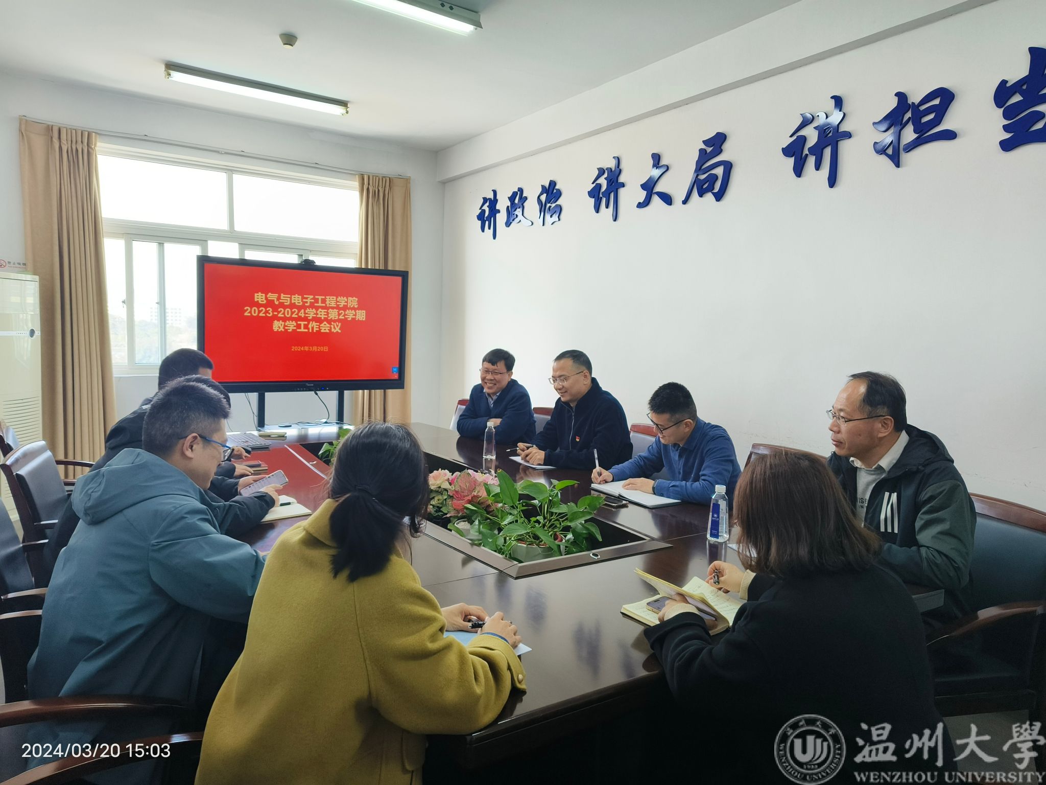 会上,陈院长结合温州大学新学期教学工作会议精神,对学院新学期教学重点工作进行了布置。他指出,各专业务必重视本科生毕业论文指导工作,严格按照院校两级的要求开展工作,加强过程监控,实时掌握学生论文进度,确保学生高质量完成论文撰写;持续推进专业建设,加强专业建设力度,积极准备电气工程及其自动化专业国家一流专业验收,认真谋划电子信息科学与技术专业工程认证工作;加强课程群建设,促进教学创新;加强教学规范性建设,不可随意调停课,各系部要积极组织教师们参加公开课等各类教学教研活动。