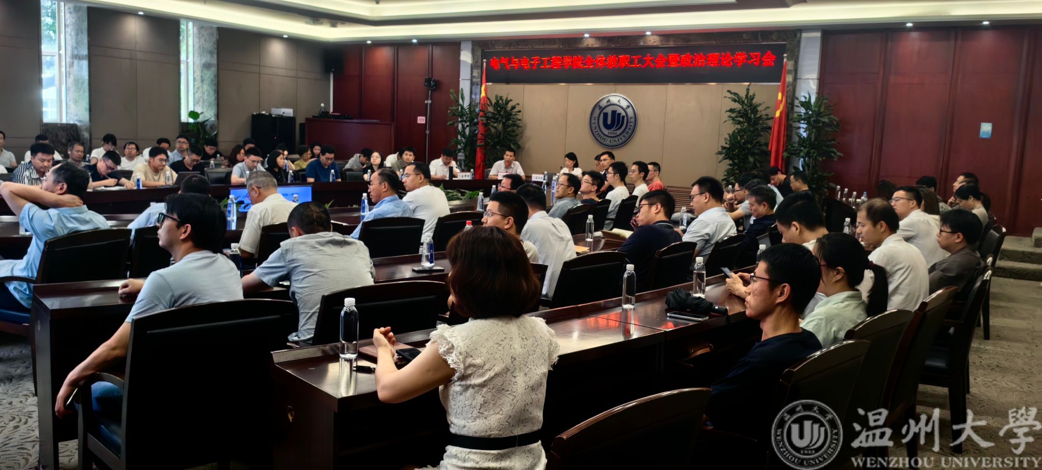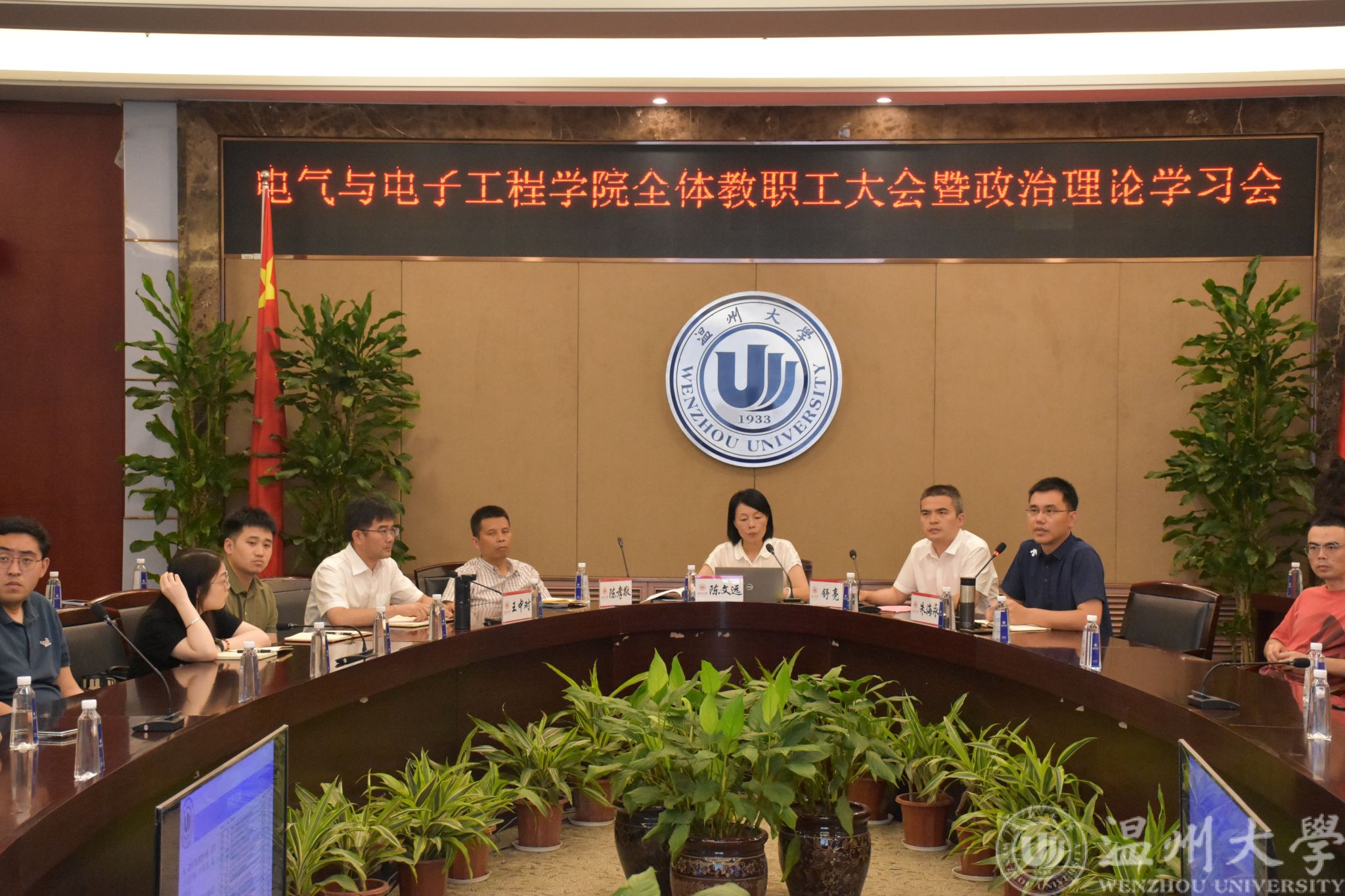 6月26日下午,yl23455永利官网在岩松堂白鹿厅召开全院教职工大会暨政治理论学习会,学院新一任班子成员及全体教职工参加会议。会议由学院党委书记陈文远主持。