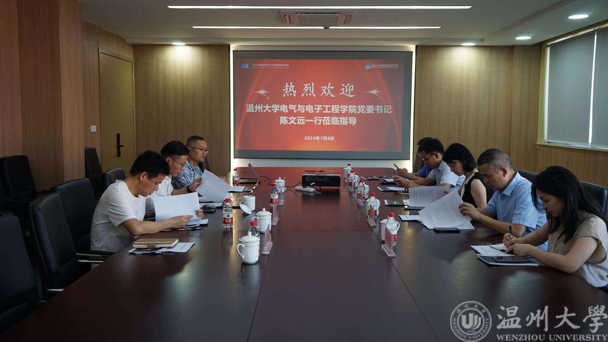 7月8日下午,我院党委书记陈文远、副院长舒亮、副院长朱海永、校地方合作处副处长王鹏一行走访调研温州大学智能锁具研究院。研究院院长阮秀凯及相关负责人热情接待。