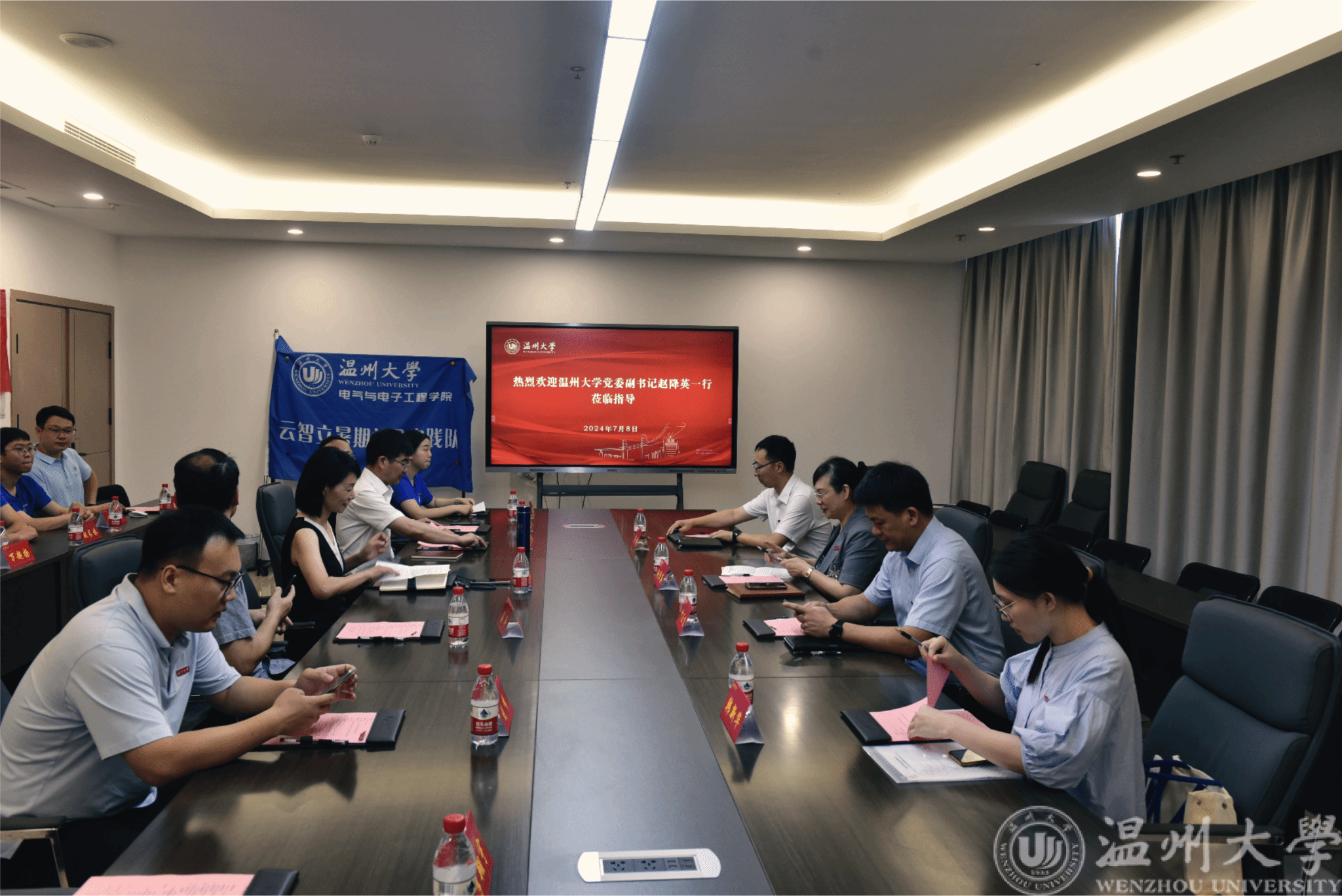 7月8日上午,温州大学党委副书记赵降英、校党委组织部副部长叶正飞、校团委书记杨鹏以及校团委办公室相关人员一行看望慰问了我院云智立暑期社会实践队。我院党委副书记王中对、温州大学亚龙智能产业学院执行院长朱志亮、实践队指导老师吴平教授以及相关辅导员参加慰问座谈会。座谈会由学院党委书记陈文远主持。