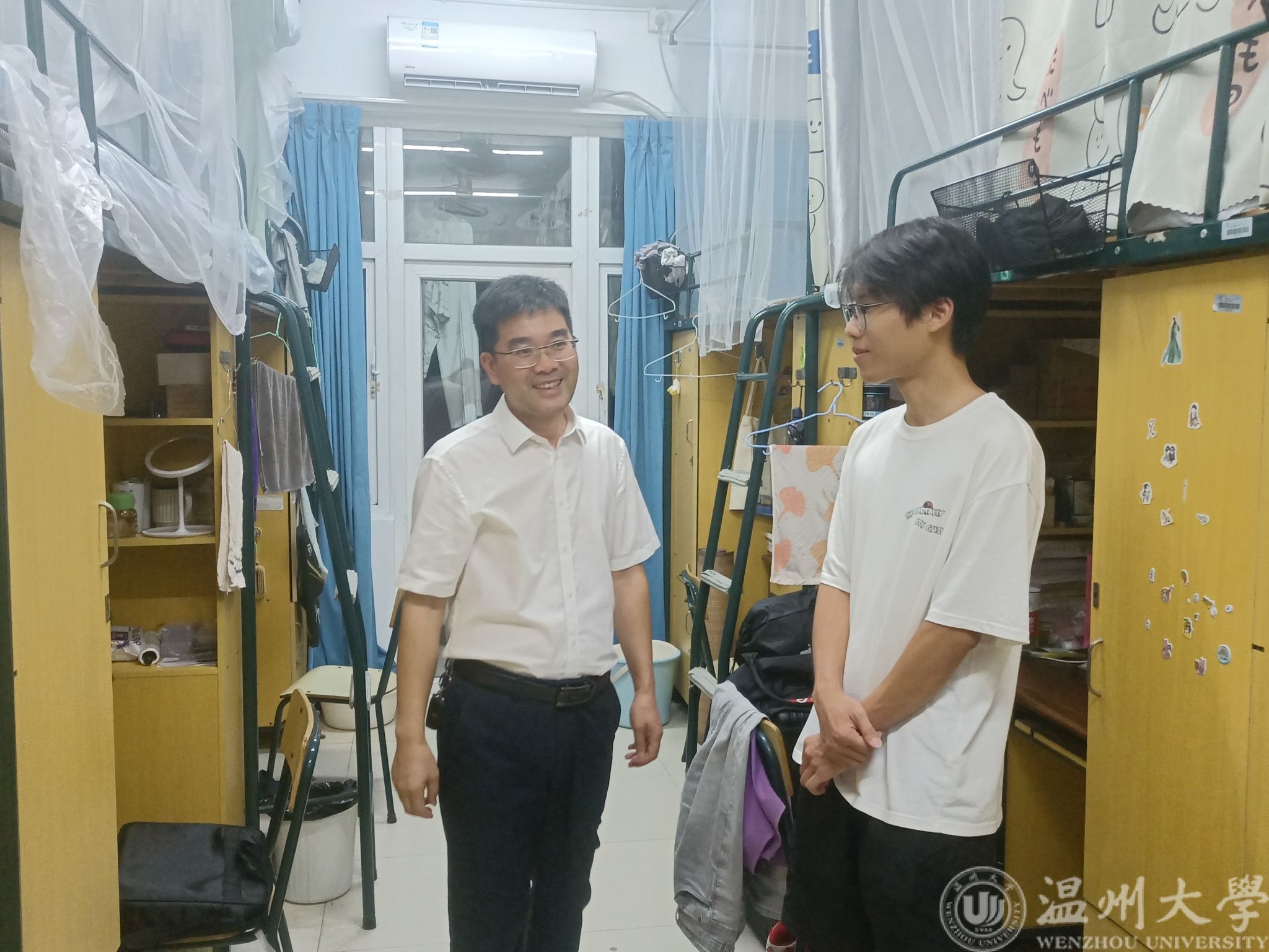会议结束,王中对书记和辅导员余明新一起前去社会实践寝室走访,在走访过程中,王中对书记对假期留宿寝室的安全和卫生情况做出了要求。同时希望同学们在开展社会实践的过程中也要坚持学习,不断充实自己。王书记表示同学们在学习和生活有什么困难可以和学院联系,学院会为同学们做好保驾护航。