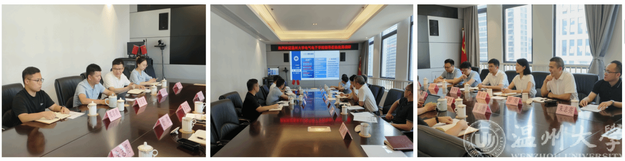 副院长舒亮作院情介绍。他从电气电子学院的基本概况、人才培养、学科建设、服务地方等方面介绍了学院发展情况以及近年来学院所取得的业绩。温州大学亚龙智能产业学院执行院长朱志亮交流了现有培训项目以及进一步深化合作意向。鹿城区人社局职业能力建设科负责人陈国胜等分别就浙江省职业培训补贴管理政策、职业技能鉴定中心认定、区域内电气电子类专业用人需求、人才引进特色做法等作了详尽介绍。与会人员还就进一步深化校地合作、培训项目合作、优质就业岗位拓展等方面进行了深度交流与讨论。