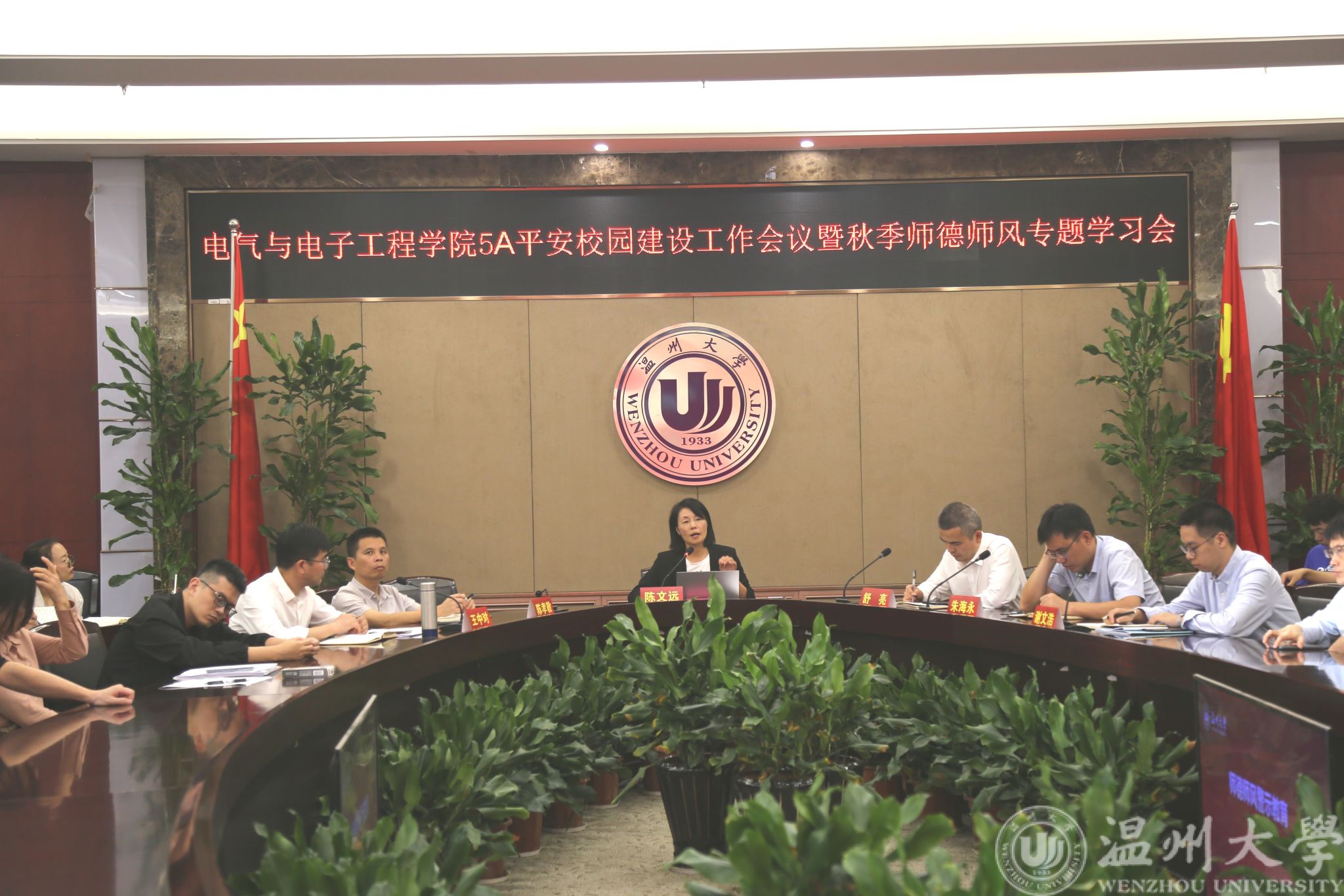 10月23日下午,yl23455永利官网在南校区岩松堂白鹿厅召开争创5A等级平安校园建设工作暨秋季师德专题教育会议。学院班子成员、全体教职工参加会议。会议由学院党委书记陈文远主持。