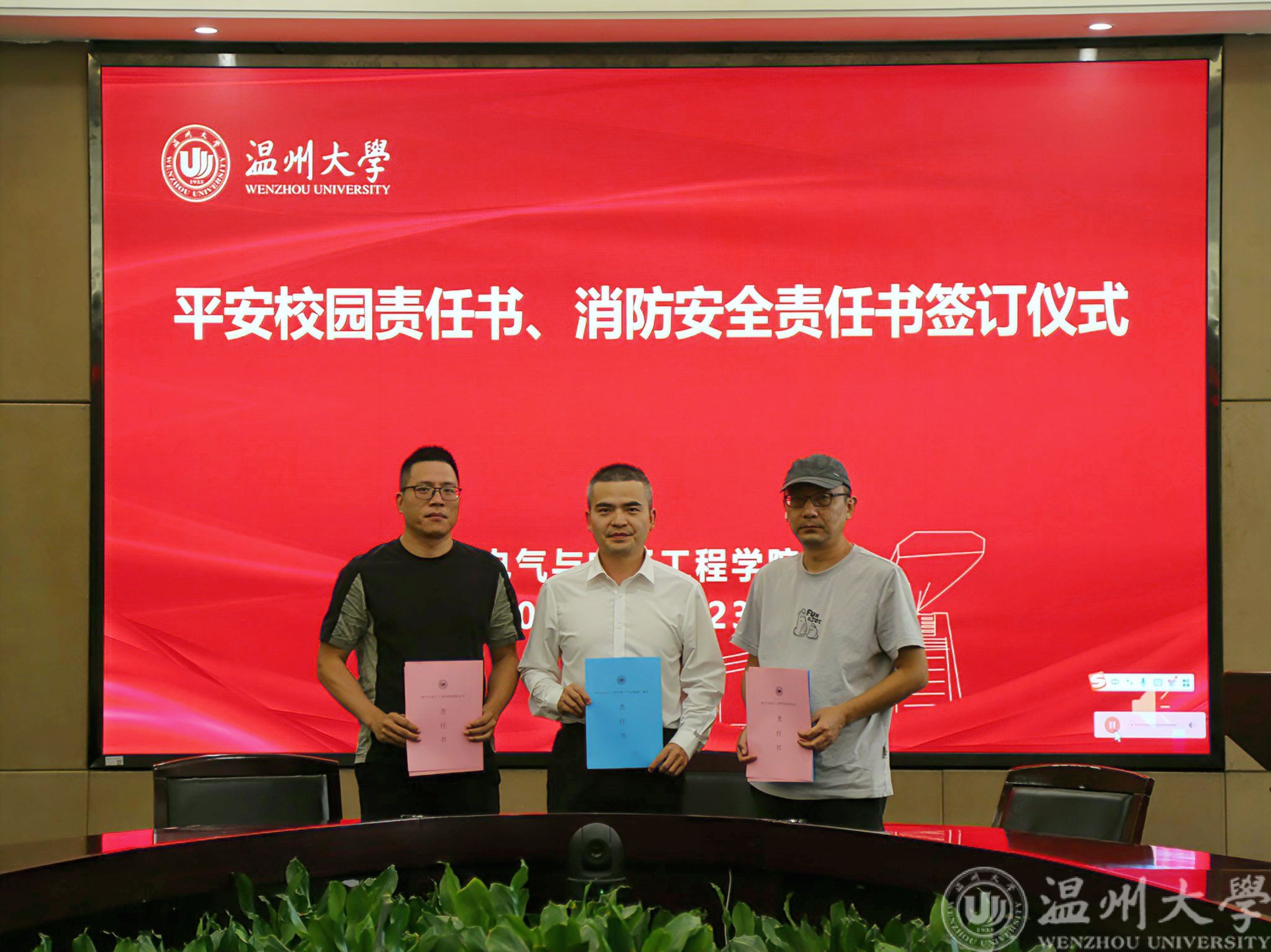 学院党委副书记、纪委书记王中对解读《温州大学争创5A等级平安校园建设工作方案》,领学《等级平安校园考评应知应会》内容,并对学校争创5A等级平安校园建设工作进行部署。学工办与实验中心负责人作为学院内设机构代表与学院签订了“平安校园”建设责任书、消防安全责任书。全体教职工共同签订了反诈责任书。
