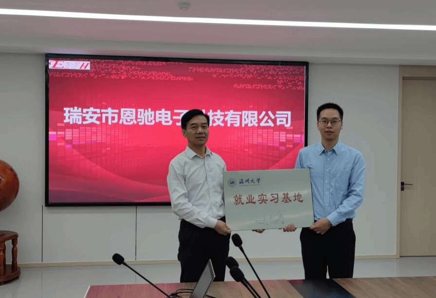 为加强校企合作,促进产教深度融合,搭建学生就业实习平台,10月25日,我院学术副院长谢文浩博士一行6人前往瑞安市恩驰电子科技有限公司调研交流。瑞安市恩驰电子科技有限公司总经理唐国民出席座谈会。