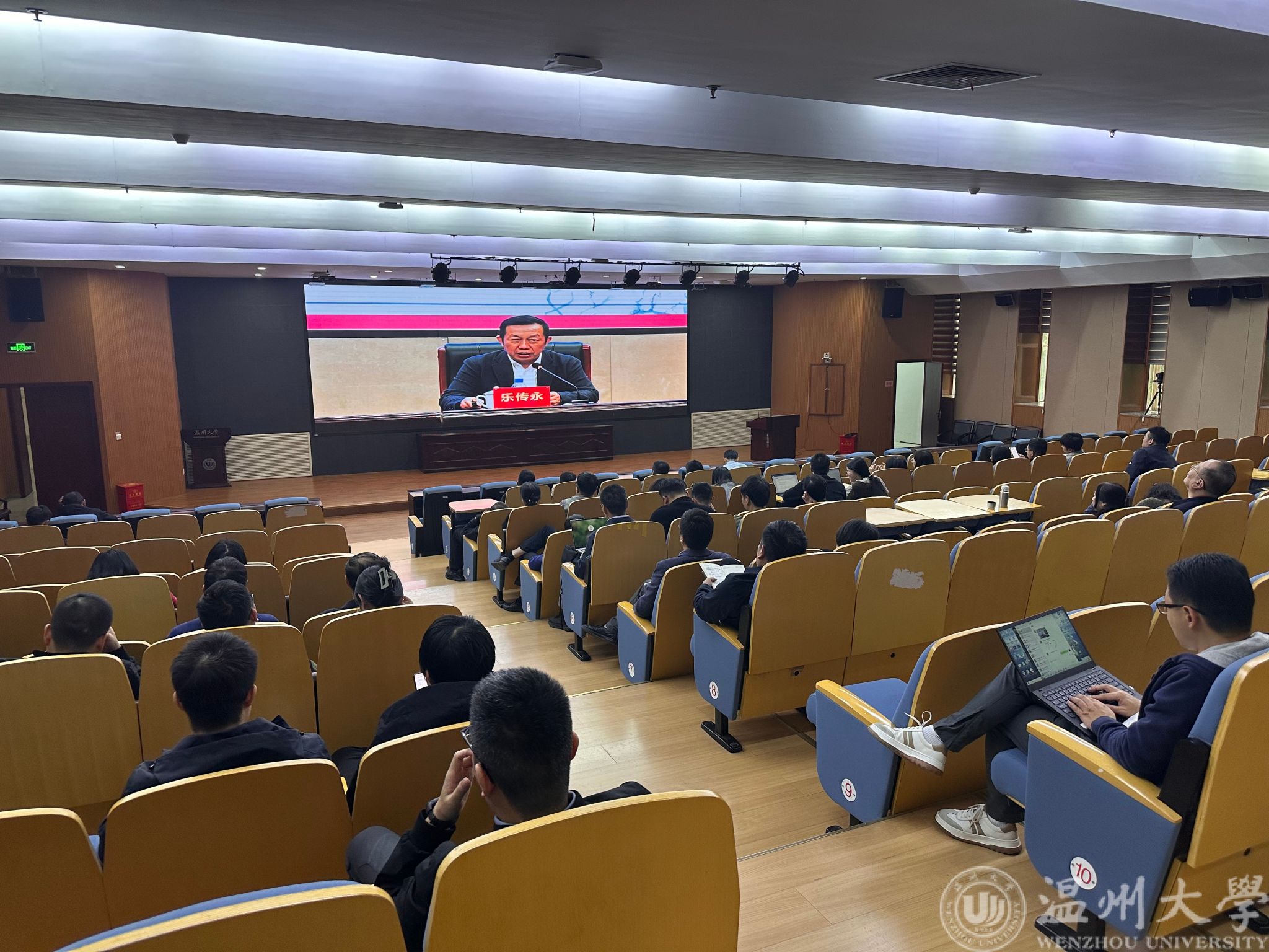 为进一步扎实推进本科教育教学自评自建工作,11月20日,学校隆重召开温州大学新一轮教育教学审核评估启动大会。本次会议采取主会场与分会场相结合的形式,通过线上直播方式设立分会场。yl23455永利官网全体教职工在南校区步青厅分会场认真观看了直播。