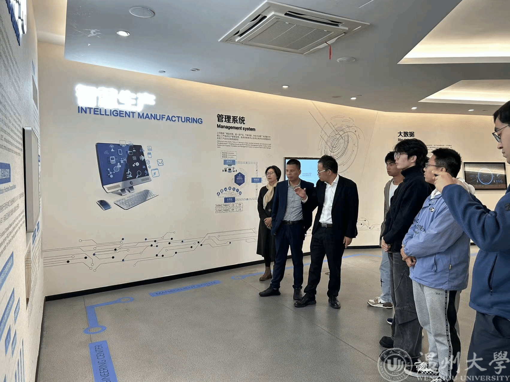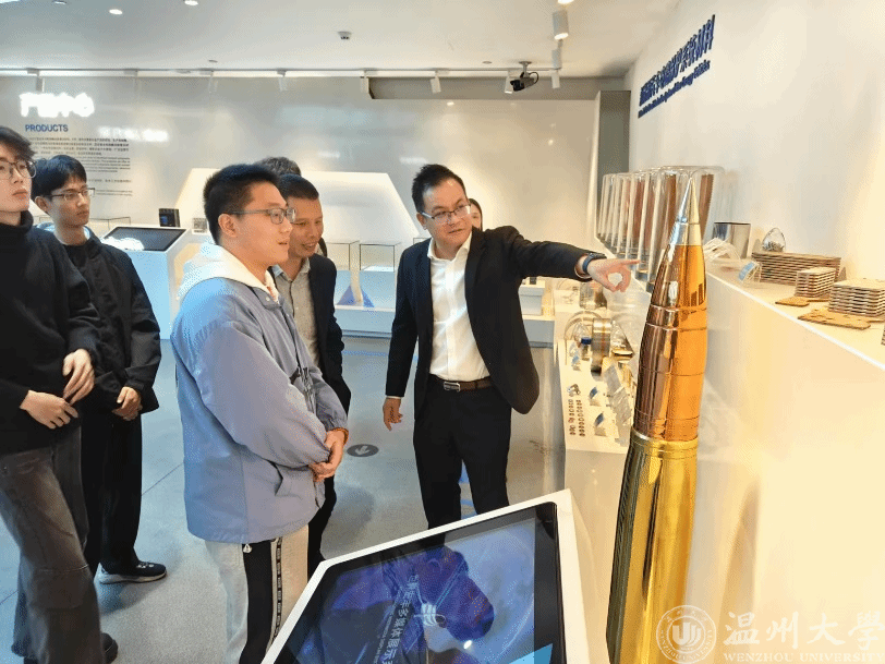参观结束后,师生一行与温州宏丰企业人员进行了深入座谈。座谈会上,温州宏丰电工合金股份有限公司的瞿经理详细介绍了企业的发展历程、核心业务和人才需求。她提到,企业的发展离不开温州地方高校的支持,而高校培养出的高素质人才正是企业持续创新发展的动力源泉。她还表示,希望未来能够与温州大学在人才培养、技术研发等方面开展更加紧密的合作,实现互利共赢。