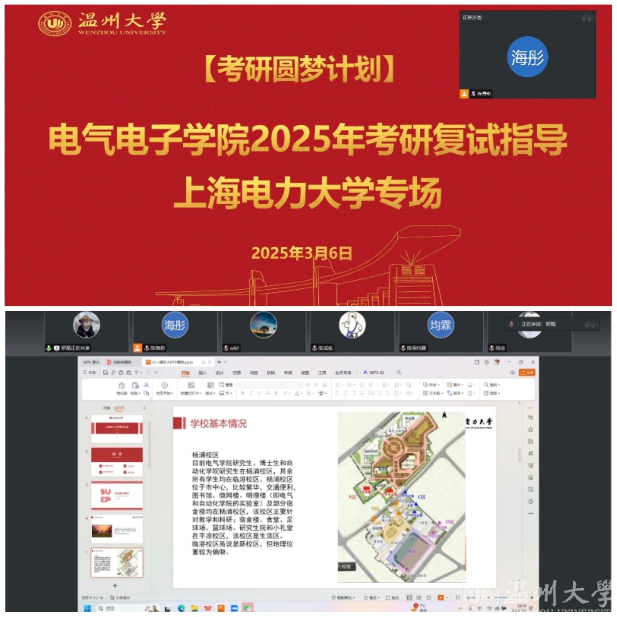 在3月6日晚上,学院又邀请到目前在上海电力大学攻读电气工程专业的2024届校友罗磊同学进行复试经验分享。罗磊同学同样通过自己的实际经历,为同学们带来了深入浅出的经验分享,给出了许多实用的建议。