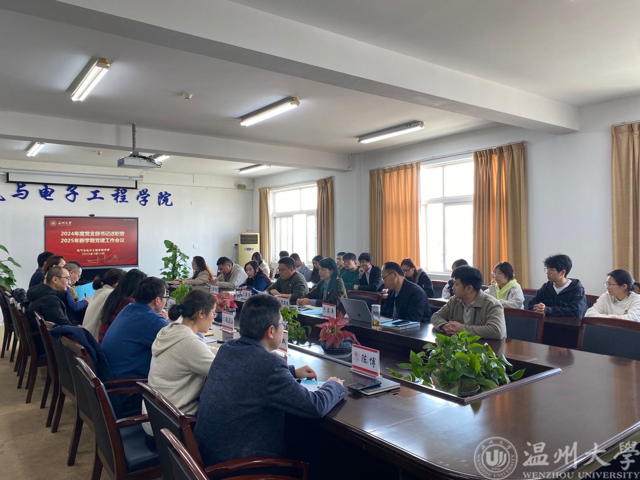 为落实管党治党政治责任,全面实施党建强院行动,推动学院党建整体建强,3月12日下午,我院党委举行了2024年度党支部述职评议暨2025年新学期党建工作会议,学院党委班子成员、各科室负责人、专职组织员、全体师生党支部书记及支委参加会议。会议由学院党委书记陈文远主持。